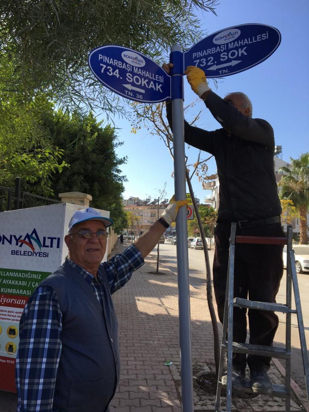 Konyaaltı Belediyesi, sınırları içinde bulunan mahallelerin sokak ve yön levhalarını yeniliyor. Sokak ve mahalle adres güncellemesi ya da daha farklı nedenlerden ötürü işlerliğini yitirmiş sokak ve yön levhaları tek tek yenileniyor. Konyaaltı Belediyesi İmar İşleri Müdürlüğü Numarataj Servisi, 30 Mart 2014 tarihi itibariyle mahalle statüsü kazanan köylerin sokak numaralarını belirledi. Buna göre Doyran Bölgesi’nde Kır, Gökcan, Çamlıbel, Doyran, Karatepe ve Dağ Mahalleleri ile Çakırlar Bölgesi’nde Suiçecek, Zümrüt, Demircilik, Aydınlık, Yenimahalle ve Kumçay Mahalleleri’nde sokaklar, sokak levhalarıyla tek tek numaralandırıldı. Yayla bölgesi olan Saklıkent’in Karçukuru mevkiine kadar Konyaaltı’nda tüm cadde ve sokaklar tek tek numaralandırıldı.