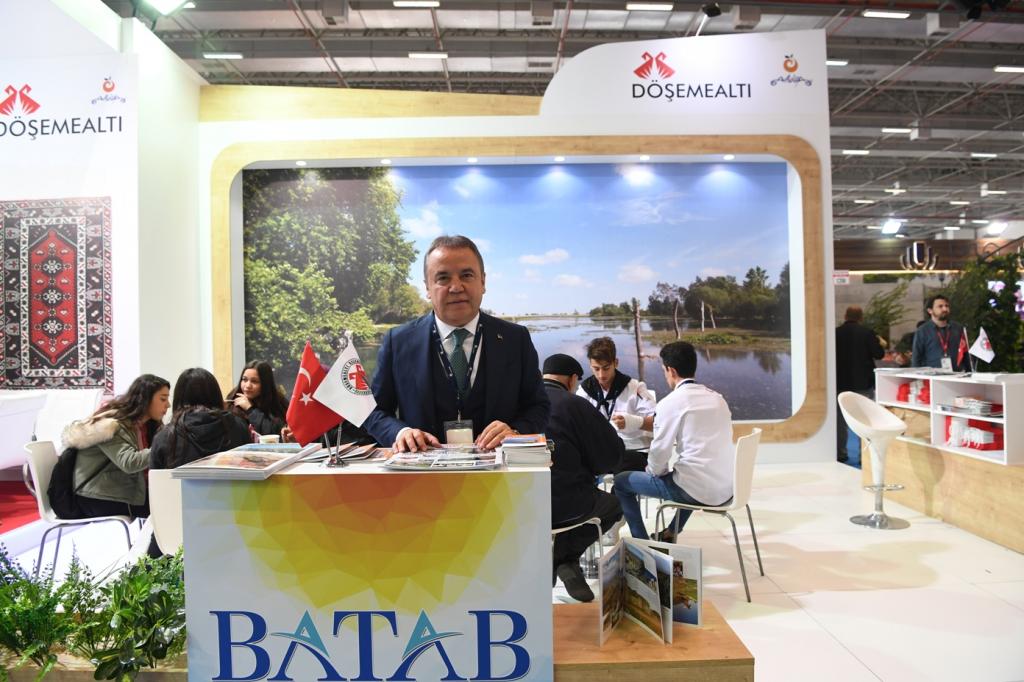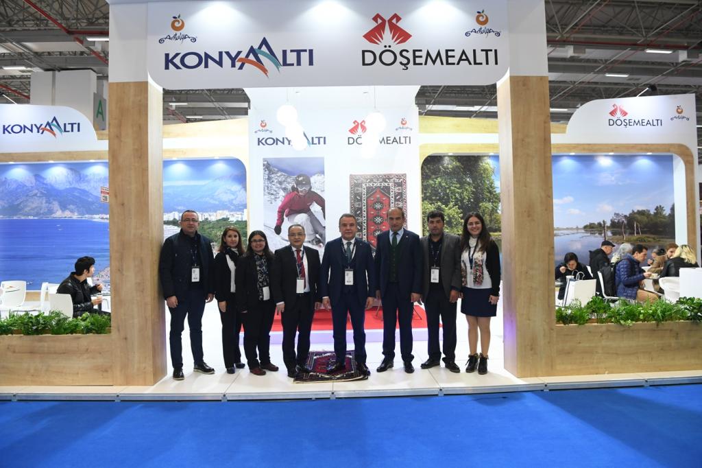 Batı Antalya Turizm Koruma ve Gelişim Bölgesi Altyapı Hizmet Birliği (BATAB) çatısı altında Konyaaltı Belediyesi ve Döşemealtı Belediyesi 11. Travel Turkey İzmir Turizm ve Fuar Kongresi’nde yerini aldı. Konyaaltı Belediye Başkanı ve BATAB Başkanı Muhittin Böcek, fuara bizzat katılarak, tanıtıma katkı sağladı. Başkan Böcek, fuarda standı ziyaret eden misafirleri ağırlayarak, Konyaaltı’nın güzellerini anlattı. Başkan Böcek, aynı zamanda fuara katılan belediye, seyahat acenteler ve tur şirketlerinin stantlarını gezdi.