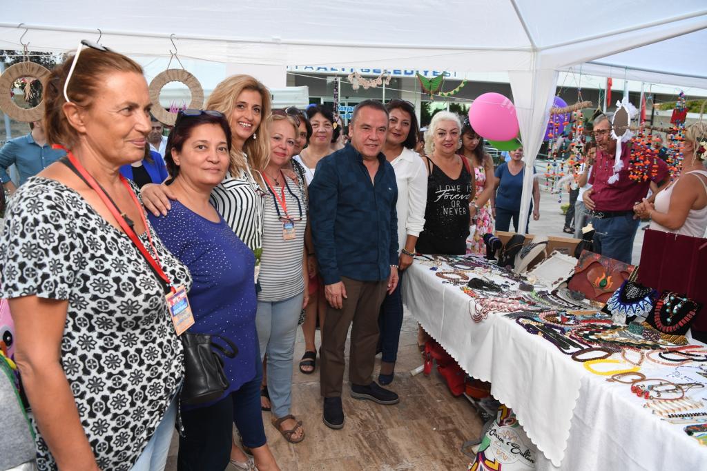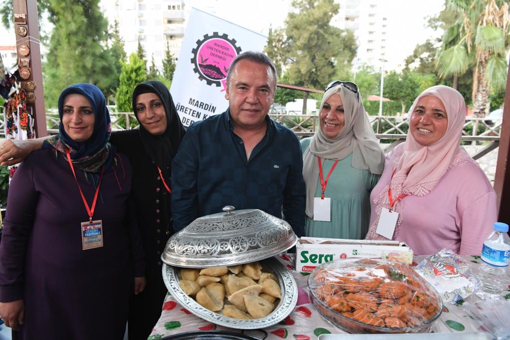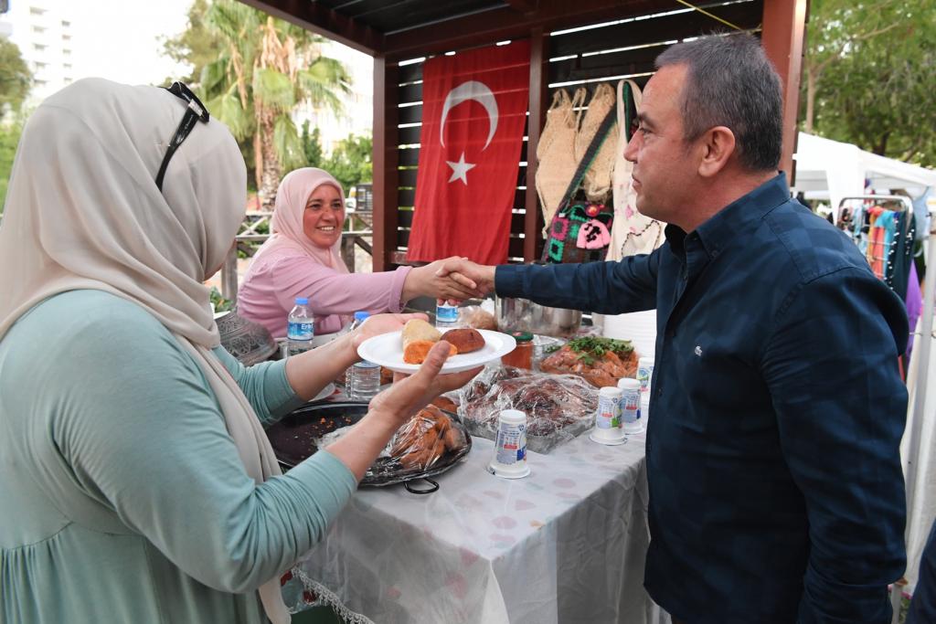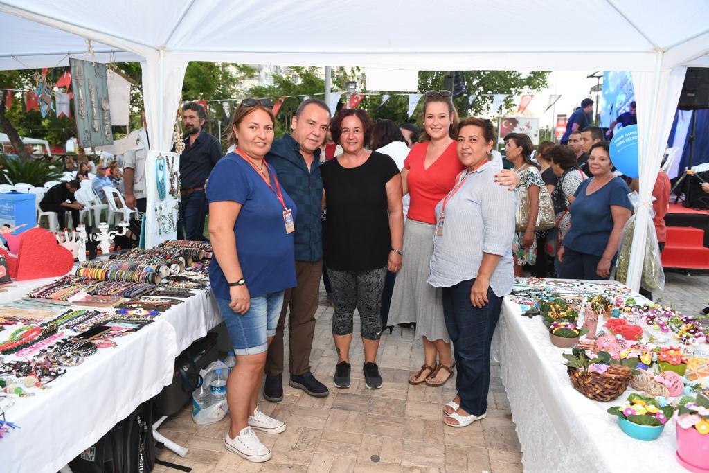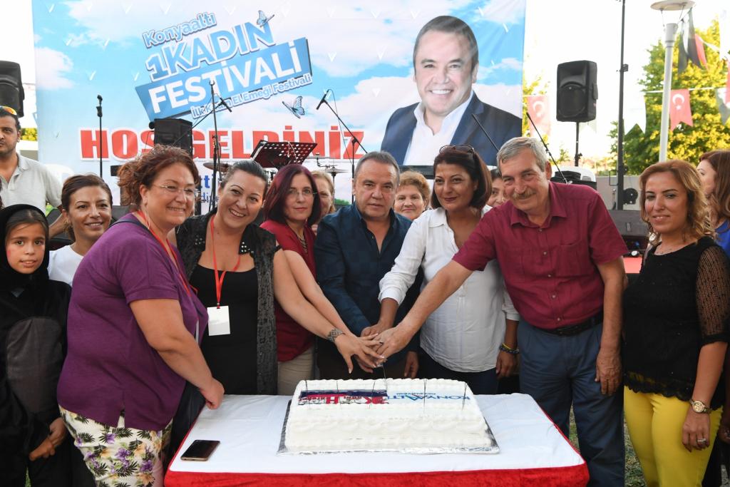 Başkan Muhittin Böcek daha sonrasında CHP Konyaaltı İlçe Başkanı İlhan Buğdaycı, 1 Kadın Hareketi Derneği Başkanı Başkanı Buket Dağlı ve dernek üyeleriyle birlikte pasta keserek Festivalinde açılışını yaptı. Açılış sonrası stantları gezen Başkan Muhittin Böcek, gördüğü ilgiden de son derece memnun kaldı.