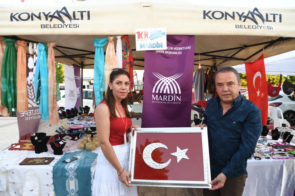 Konyaaltı Belediye Başkanı Muhittin Böcek, 1 Kadın Hareketi Derneği işbirliğiyle düzenledikleri 1 Kadın Festivali’nin açılışını gerçekleştirdi. Açılışa, Cumhuriyet Halk Partisi (CHP) Konyaaltı İlçe Başkanı İlhan Buğdaycı, 1 Kadın Hareketi Derneği Başkanı Buket Dağlı ve yüzlerce vatandaş katıldı. Konyaaltı Belediyesi Sosyal Hizmetler Merkezi (KOSHİM) yanında yılın 12 ayı boyunca hizmet veren Kadın El Emeği Pazarı’nda açılan 1 Kadın Festivali’nde 14 il ve 22 ilçeden gelen 120 kadının yaptığı el işi çalışmalar satışa sunuluyor.