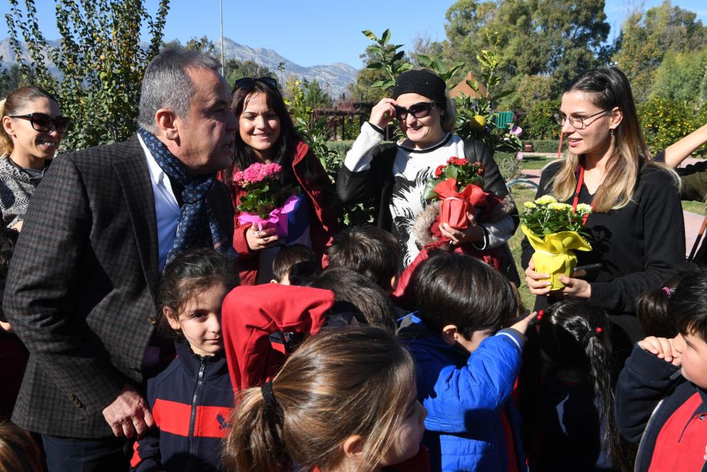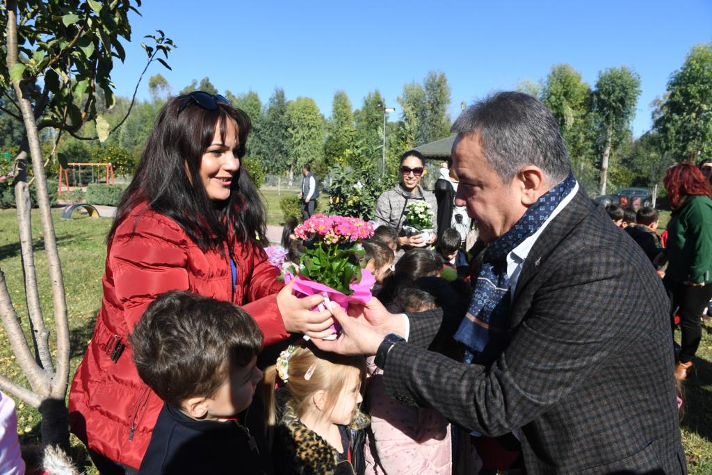 Başkan Böcek, 24 Kasım Öğretmenler Günü’yle ili olarak da Sınav Koleji Anaokulu’nda görevli öğretmenlere çiçek vererek bu özel günlerini kutladı.
