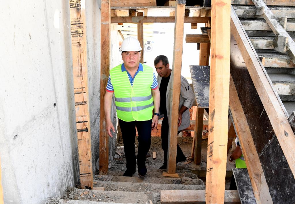 Şantiye sorumlusundan gerekli teknik bilgiyi alan Başkan Muhittin Böcek, çalışanların elini tek tek sıkarak onlara çalışmalarında kolaylıklar diledi.