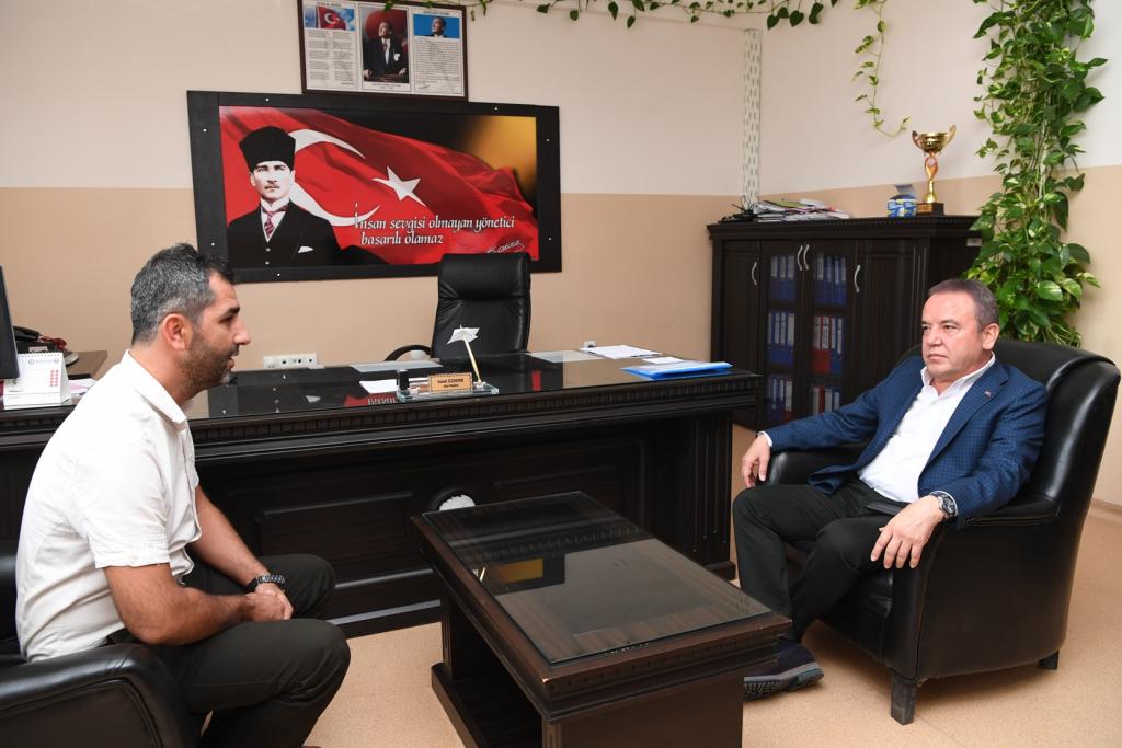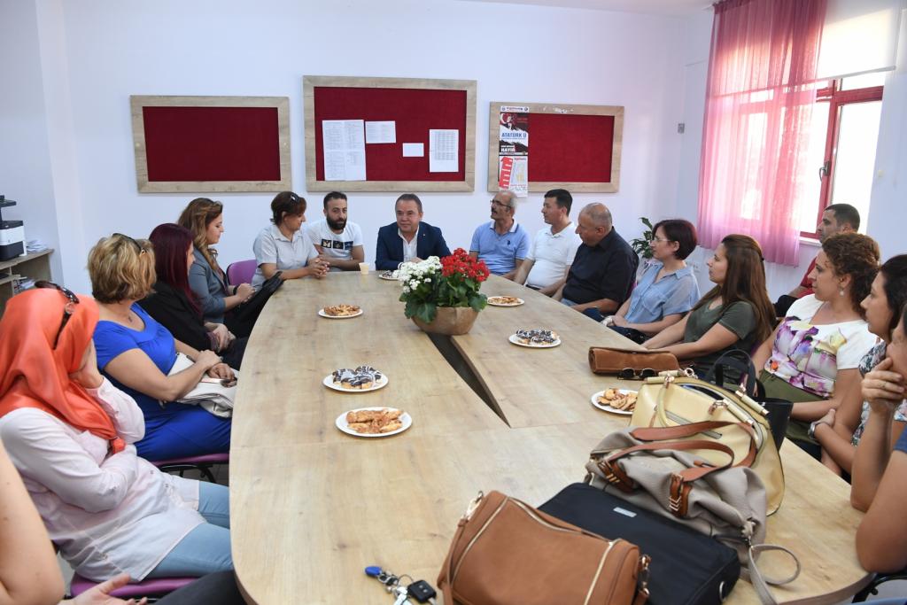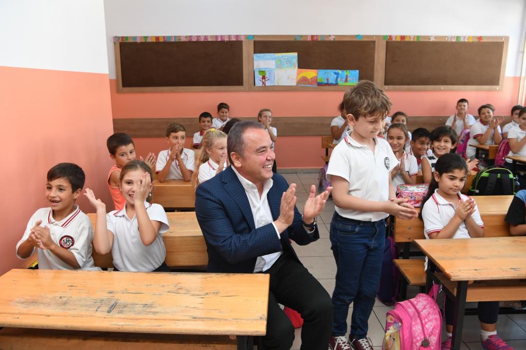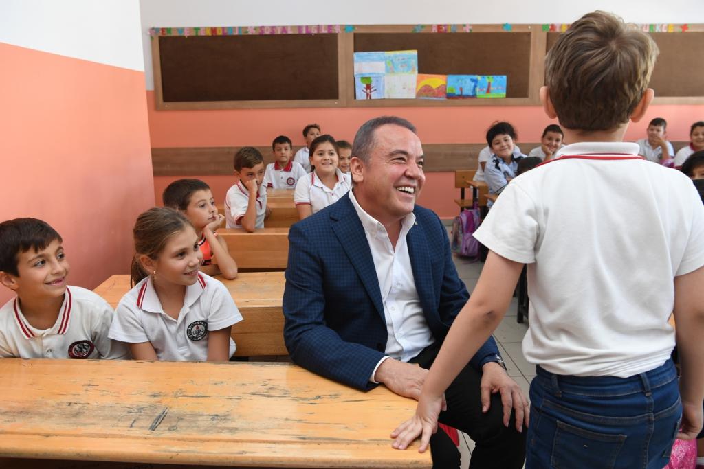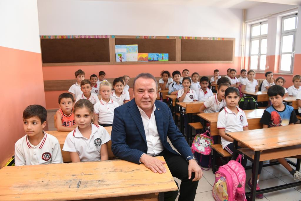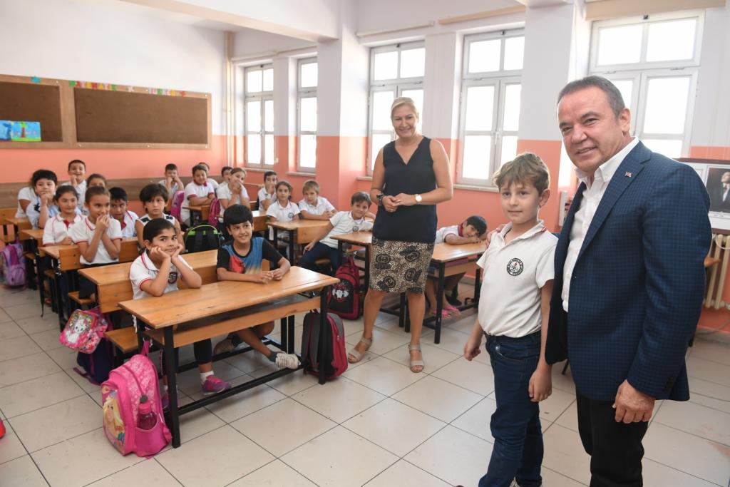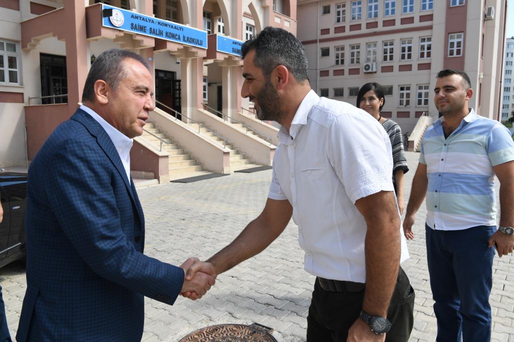 İlk olarak Sarısu Mahallesi’nde Saime Salih Konca İlk ve Ortaokulunu ziyaret eden Başkan Böcek, burada Okul Müdürü Hamdi Özdemir tarafından karşılandı. Hamdi Özdemir yaz tatili döneminde Konyaaltı Belediyesi tarafından okullarına yapılan boya desteğinin kendileri için çok önemli olduğunu ifade ederek, Başkan Muhittin Böcek’e teşekkür etti. Ardından 3/B sınıfı öğrencilerini ziyaret eden Başkan Böcek, burada öğrencilerle birlikte “Nesi var?” oyunu oynadı.