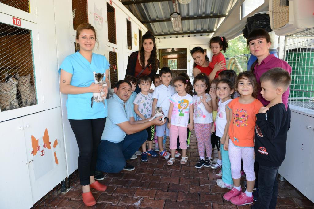 Konyaaltı Belediyesi kreşinde eğitim gören 5-6 yaş grubu minik öğrenciler, 4 Ekim Hayvanları Koruma Günü’nde sevimli dostlarını unutmayarak, Konyaaltı Belediyesi Sokak Hayvanları Sağlık ve Rehabilitasyon Merkezi’ni ziyaret etti. Minik öğrenciler, barınakta verilen hizmetleri görevli veterinerlerin ağzından dinledi. Sokak hayvanlarının kısırlaştırılarak tedavilerinin yapıldığı klinik odaları veterinerler tarafından gezdirilerek, bilgiler verildi. Sonrasında ise köpeklerin ve kedilerin bulunduğu bölümleri gezen öğrenciler, özellikle yavru kedilere büyük ilgi gösterdiler. Barınağın yeşil dokusuna da hayran kalan öğretmen ve öğrenciler, minik dostlarına 4 Ekim Hayvanları Koruma Günü nedeniyle getirdikleri mamaları verdiler.
