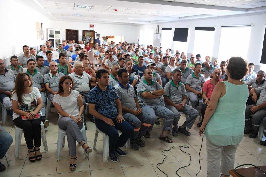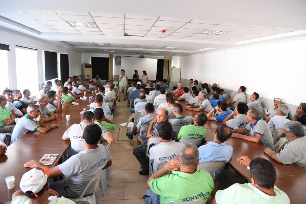 Hizmet içi eğitim seminerleriyle çalışanlarını bilgilendiren Konyaaltı Belediyesi iş sağlığı ve güvenliği eğitim semineriyle personeli bilgilendirmeye devam ediyor. Konyaaltı Belediyesi Fen İşleri ve Park ve Bahçeler Müdürlüğü personeline iş güvenliği ve sağlığı eğitimi verildi.