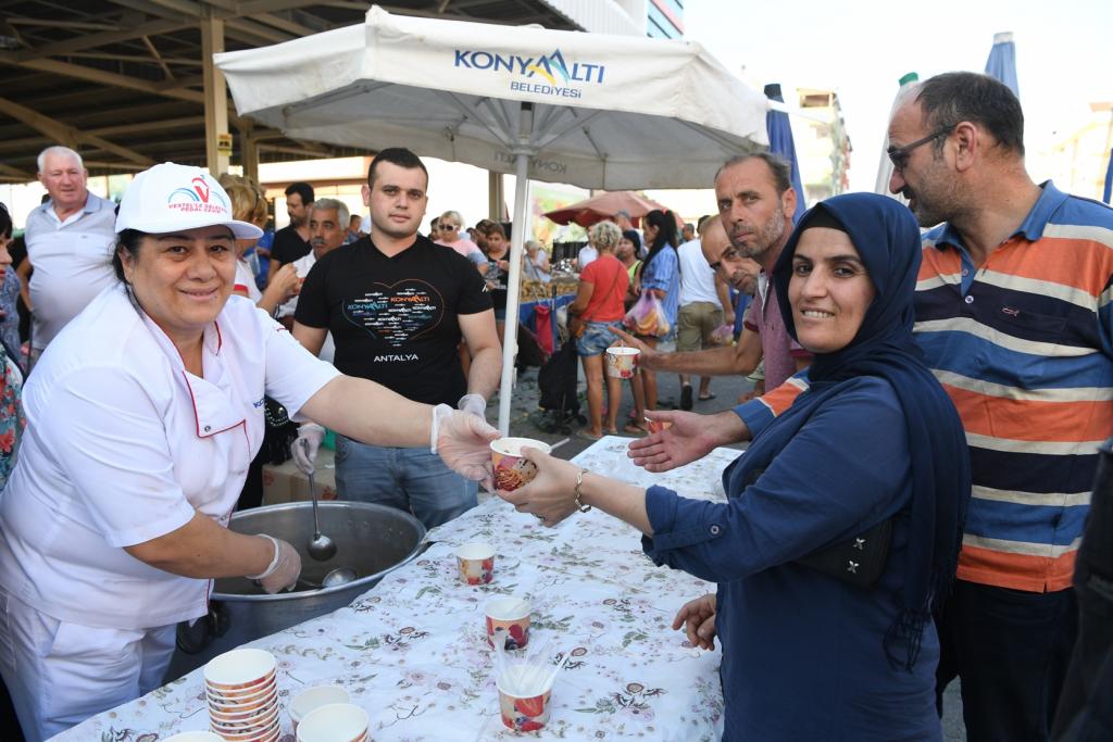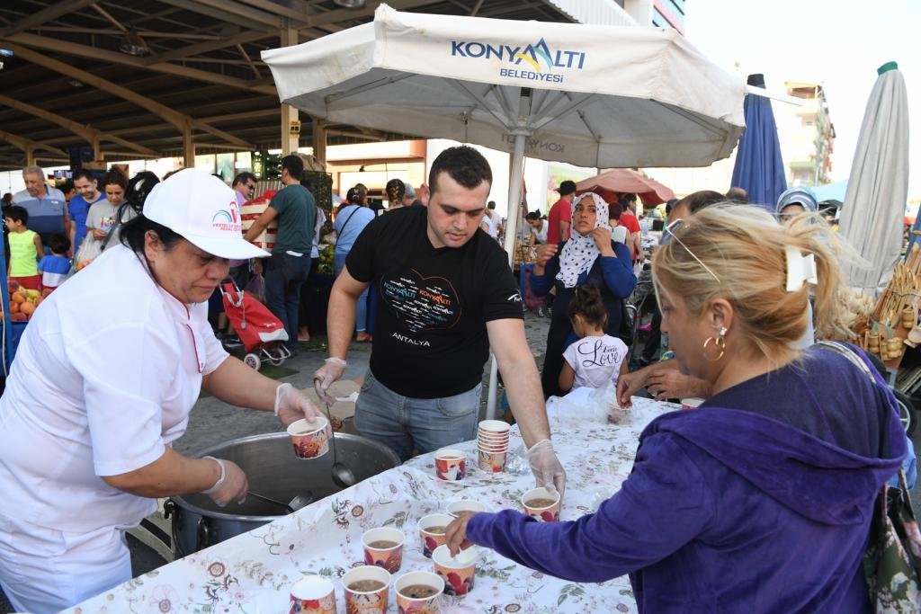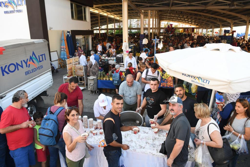 Muharrem ayında düzenlediği iftar programlarında Alevi vatandaşlarla bir araya gelen Konyaaltı Belediye Başkanı Muhittin Böcek, şimdide aşure günü etkinliği kapsamında İlçenin farklı noktalarında aşure ikramı yapıyor. Konyaaltı Belediyesi Kültür ve Sosyal İşleri Müdürlüğü, ilk olarak Liman Mahallesi Kapalı Semt Pazarı’nda salı günleri kurulan pazarda iki bin vatandaşa aşure dağıttı. 15 Ekim Pazar günü Pınarbaşı Mahallesi Kapalı Semt Pazarı ile 5M Migros AVM önünde, 16 Ekim Pazartesi günü ise Siteler Mahallesi Kapalı Semt Pazarı’nda aşure ikramı yapılacak.