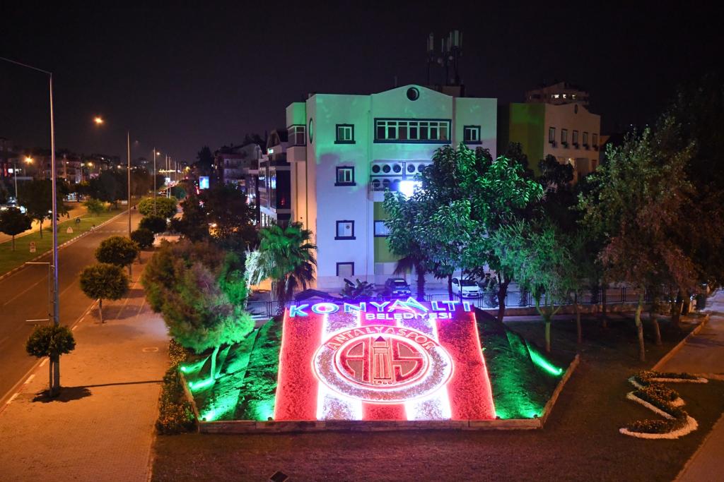 İçleri kırmızı-beyaz taşlarla döşenen alanda Antalyaspor logosunu birebir tema eden Konyaaltı Belediyesi, led aydınlatma sistemiyle de meydana gece de hayat kazandırdı. Antalyaspor temalı alan vatandaş ve taraftarlardan da büyük beğeni topladı.
