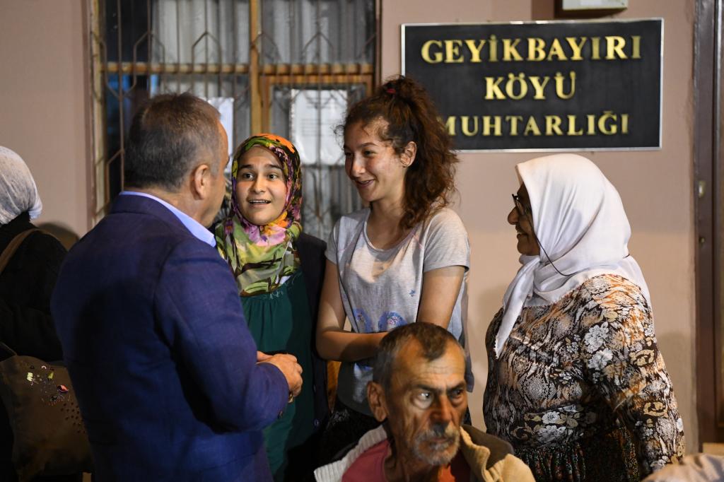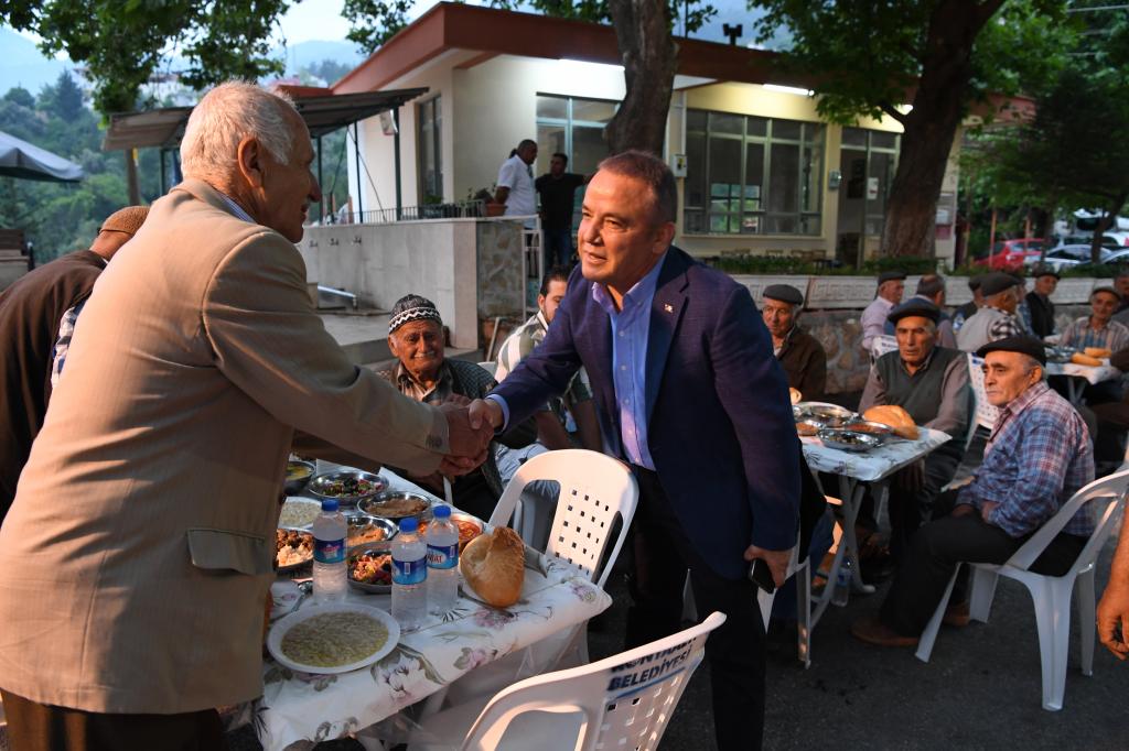 Çakırlar Mahallesi’nde taziye ziyareti sonrası Geyikbayırı Mahallesi’nde iftara katılan Başkan Muhittin Böcek, burada Geyikbayırı Mahalle Muhtarı Salih Teker ve çok sayıda vatandaş tarafından karşılandı. Muhittin Böcek, Geyikbayırı Cami önünde meydanda düzenlenen iftar yemeğine katılan vatandaşları tek tek selamladı. Yemeğe Cumhuriyet Halk Partisi (CHP) Konyaaltı İlçe Başkanı İlhan Buğdaycı, Antalya Dernekler Başkanı Nazif Alp ve çok sayıda bölge muhtarı katıldı.