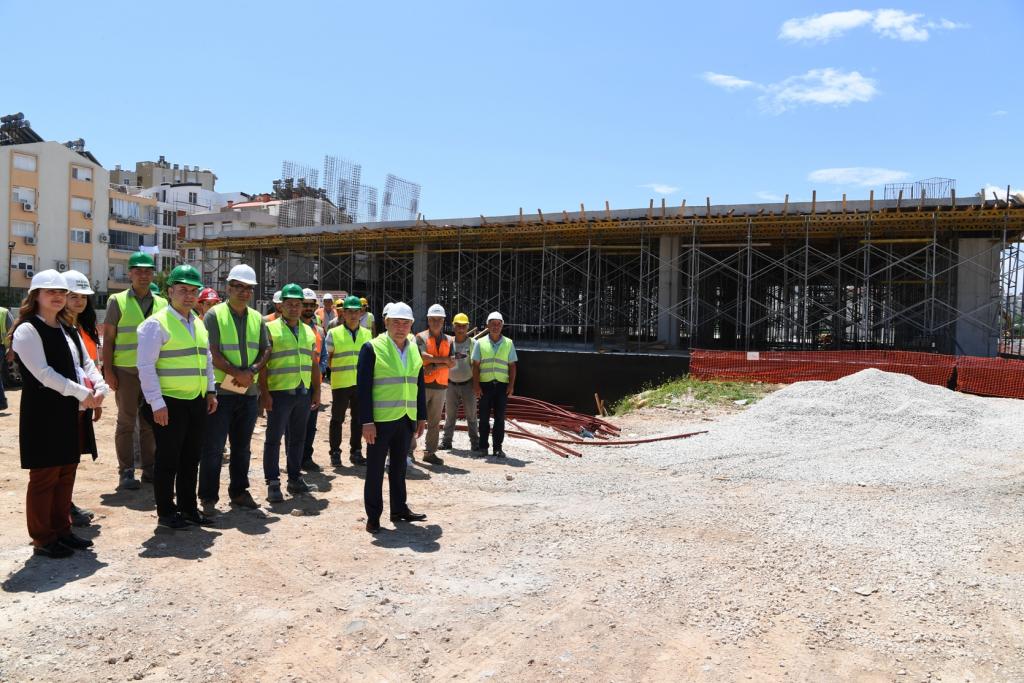 6 AY SONRA HİZMETE AÇILACAK Baret ve güvenlik yeleğiyle inşaat alanında çalışmaları yakından inceleyen Başkan Muhittin Böcek, inşaatın büyük bir bölümünü tamamladıklarını söyledi. 21 milyon 600 bin liraya ihale edilen projenin 24 Kasım 2017 tarihinde tamamlanacağını dile getiren Başkan Böcek, bu yıl 8.sini düzenleyecekleri Antalya Konyaaltı Kitap Fuarı’nı bu fuar alanında gerçekleştirmek istediklerini söyledi.