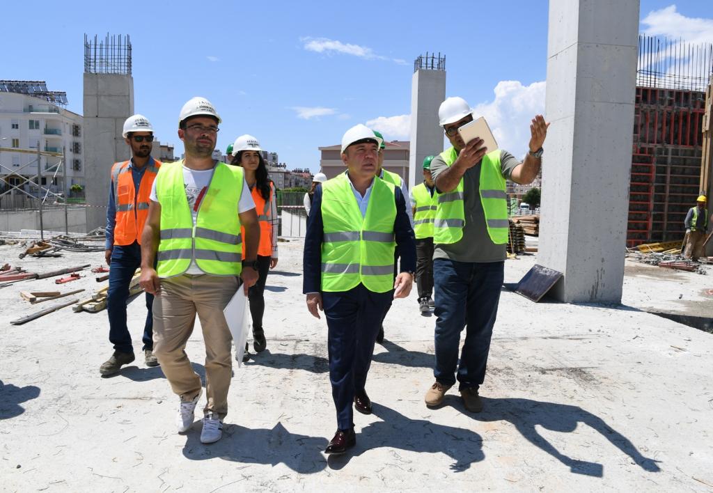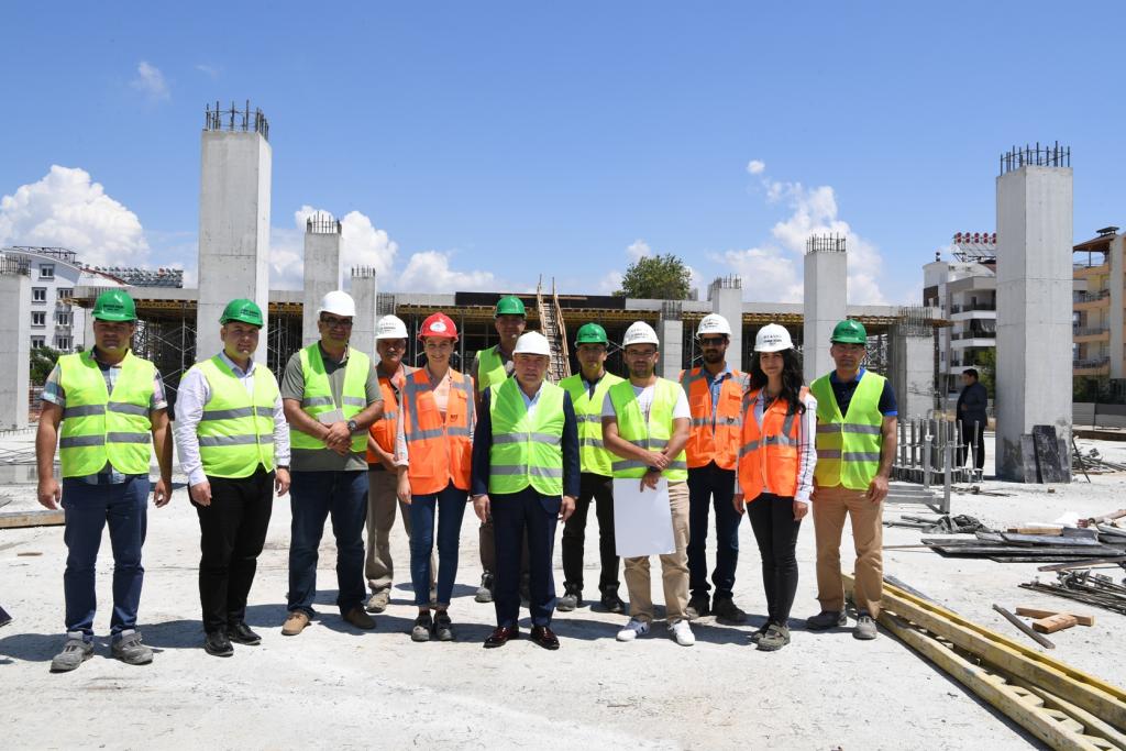 Pınarbaşı Mahallesi'nde 4 bin 36 ada 1 parselde bulunan 10 bin 500 metrekare alan üzerinde yapımına başlanan Kongre ve Fuar Merkezi’nin inşaat çalışmaları tüm hızıyla devam ediyor. Konyaaltı Belediye Başkanı Muhittin Böcek, iki ay önce temeli atılan ve inşaat çalışmaları yüzde 60 oranda tamamlanan Kongre ve Fuar Merkezi’nde çalışmaları yerinde inceledi.