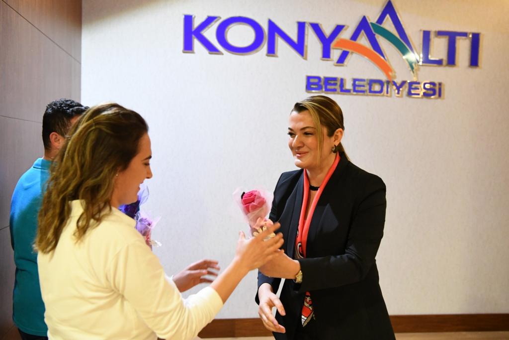8 Mart Dünya Emekçi Kadınlar Günü, Konyaaltı Belediyesi'nde kadın personellerin katıldığı bir törenle kutlandı. Konyaaltı Belediyesi Başkan Vekili Cansel Tuncer'in ilk olarak belediye hizmet binası önünde bulunan Atatürk heykeli önüne çelenk sunumuyla başlayan tören Konyaaltı Belediyesi Feslikan Salonu'nda devam etti.