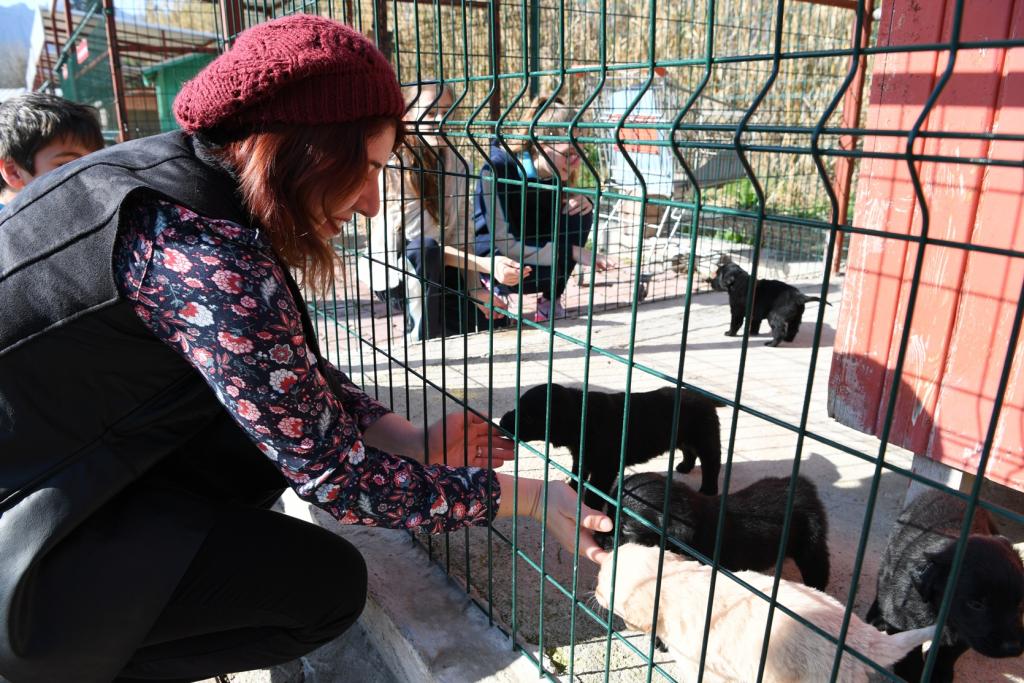 İlk olarak barınakta görevli veterinerler tarafından bilgilendirilen öğrenciler, sonrasında köpeklerin ve kedilerin bulunduğu bölümleri gezdiler. Onlara mama da alan öğrenciler, özellikle sevimli yavrularla hatıra fotoğrafı çektirmeyi de ihmal etmediler.