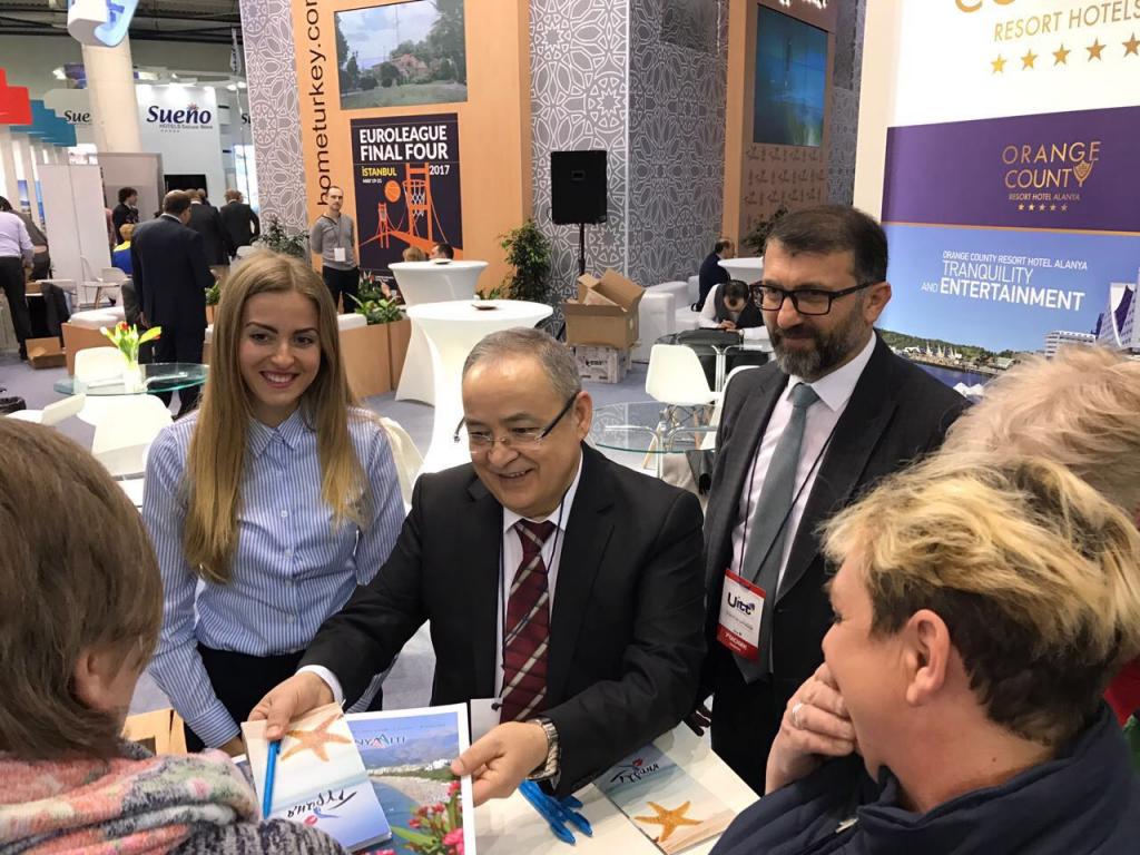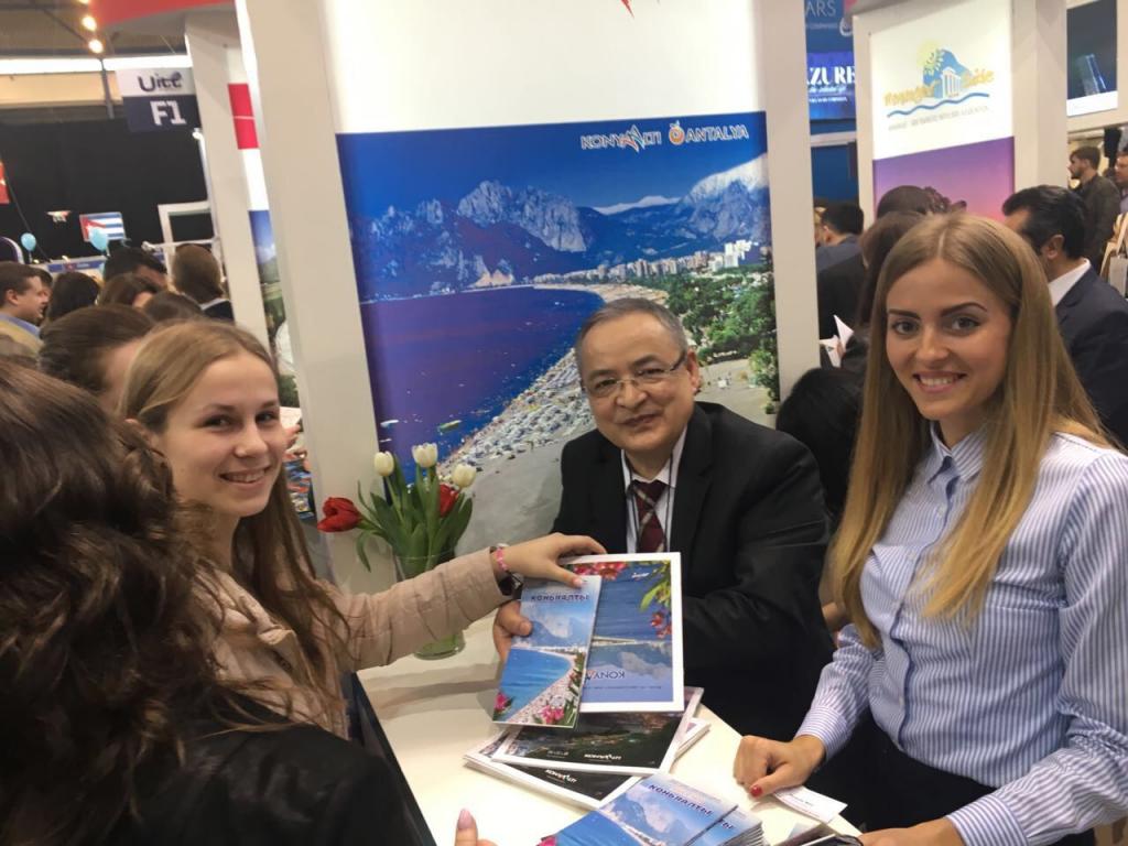 Yaz tatillerini Antalya'da geçirmek isteyen Ukrayna’lı ziyaretçiler, Antalya ve Konyaaltı ile ilgili bilgi aldı. BATAB Başkanı ve Konyaaltı Belediye Başkanı Muhittin Böcek, dünyanın her neresinde olursa olsun, Antalya ve Konyaaltı’nın tanıtımı için bu fuarlara katılmayı sürdüreceklerini söyledi. Başkan Böcek, “2017 yılında turizm sezonun daha iyi geçmesi adına çalışmalarımızı sürdürüyor. Fuarlarda bölgemizi anlatıyoruz. Konyaaltı, Türkiye’nin en önemli turizm kentlerinden biridir. Yaz ve kış turizminde tatilcilerimizi ağırlamak adına onları bilgilendiriyoruz. Katıldığımız bütün fuarlarda standımız büyük ilgi görüyor” dedi.