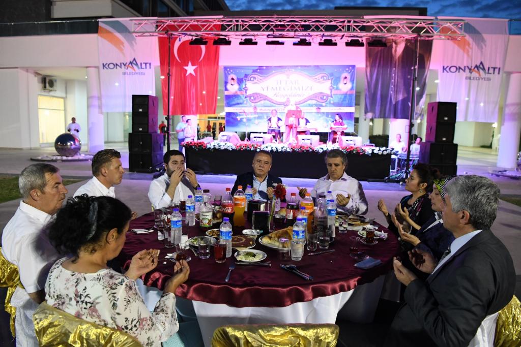 Konyaaltı Belediyesi önünde gerçekleşen geleneksel iftar yemeğine Konyaaltı Kaymakamı İbrahim Keklik, CHP Konyaaltı İlçe Başkanı İlhan Buğdaycı, Belediye meclis üyeleri, muhtarlar, Antalya Konyaaltı Turizm Kültür ve Eğitim Vakfı (KONTEV) üyeleri, Batı Antalya Turizm Koruma ve Geliştirme Bölgesi Altyapı Hizmet Birliği (BATAB) üyeleri, Konyaaltı Kaymakamlığı birim müdürleri, Konyaaltı Belediyespor temsilcileri ve şehit aileleri ve gazilerin katıldığı iftar yemeği düzenledi. Konyaaltı Belediye Başkanı Muhittin Böcek, iftara katılan misafirlerle tek tek ilgilendi.