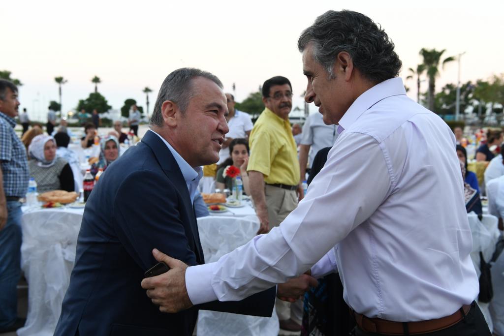 Ezan sesinin duyulmasıyla orucunu açan davetliler, yemek boyunca süren semazen gösterisi ve Tasavvuf Müziği dinletisiyle keyifli bir zaman geçirdi. Konyaaltı Belediye Başkanı Muhittin Böcek, birlik ve beraberlik duygusunun en yoğun şekilde yaşandığı Ramazan’da bir geleneği daha yerine getirmenin mutluluğunu yaşadıklarını söyledi. Başkan Böcek, “Bugün burada Konyaaltı’nın gelişmesinde katkı sunan siz değerli konuklarımızla bir aradayız. Bütün kurum kuruluşlarımızla Konyaaltımız için hep birlikte çalışıyoruz. Bu birlik ve beraberliğimiz hiç bozulmasın” dedi.