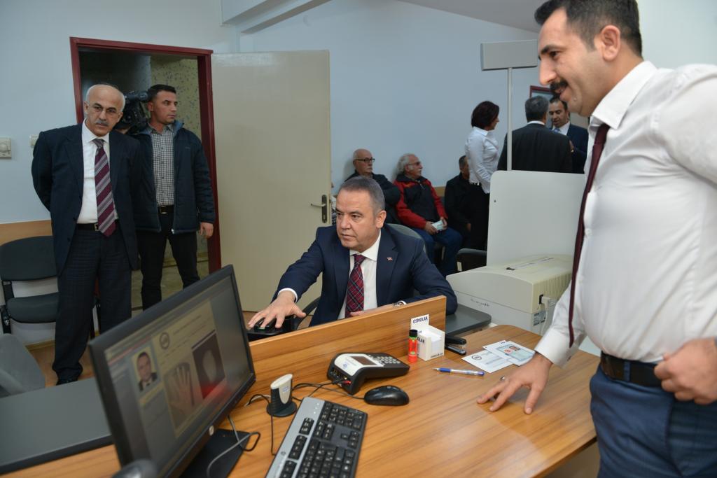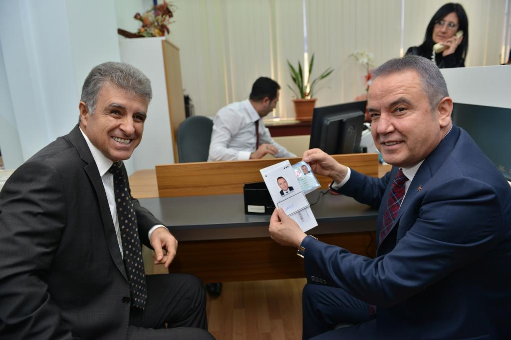 Başkan Muhittin Böcek ile birlikte Antalya Valisi Münir Karaloğlu ve Konyaaltı Kaymakamı İbrahim Keklik’te yeni kimlikler için başvuru yaptı.