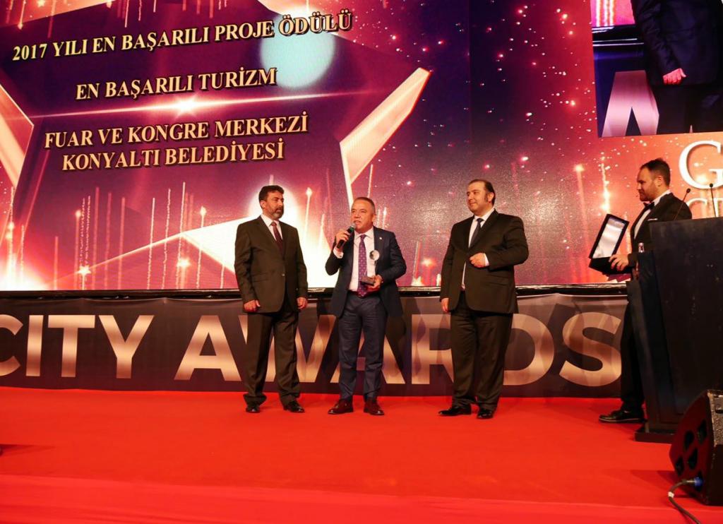 Yaşlılar Kreşi Projesi ile geçtiğimiz yıl "Yılın Büyükşehir İlçe Belediye Başkanı" ödülü alan Konyaaltı Belediye Başkanı Muhittin Böcek, şimdide Kongre ve Fuar Merkezi Projesi'yle ödüllendirildi. Başarılı bulunan çağdaş şehircilik projelerinin ödüllendirildiği Golden City Awards 2017 (Altın Şehir Ödülleri) Töreninde Konyaaltı Belediyesi, Fuar ve Kongre Merkezi projesiyle en başarılı turizm ödülüne layık görüldü. Ödülü alan Konyaaltı Belediye Başkanı Muhittin Böcek, ilçedeki turizm çalışmalarının artarak devam edeceğini belirterek, projelerinin ödüllendirilmesinin kendilerini motive ettiğini bildirdi.