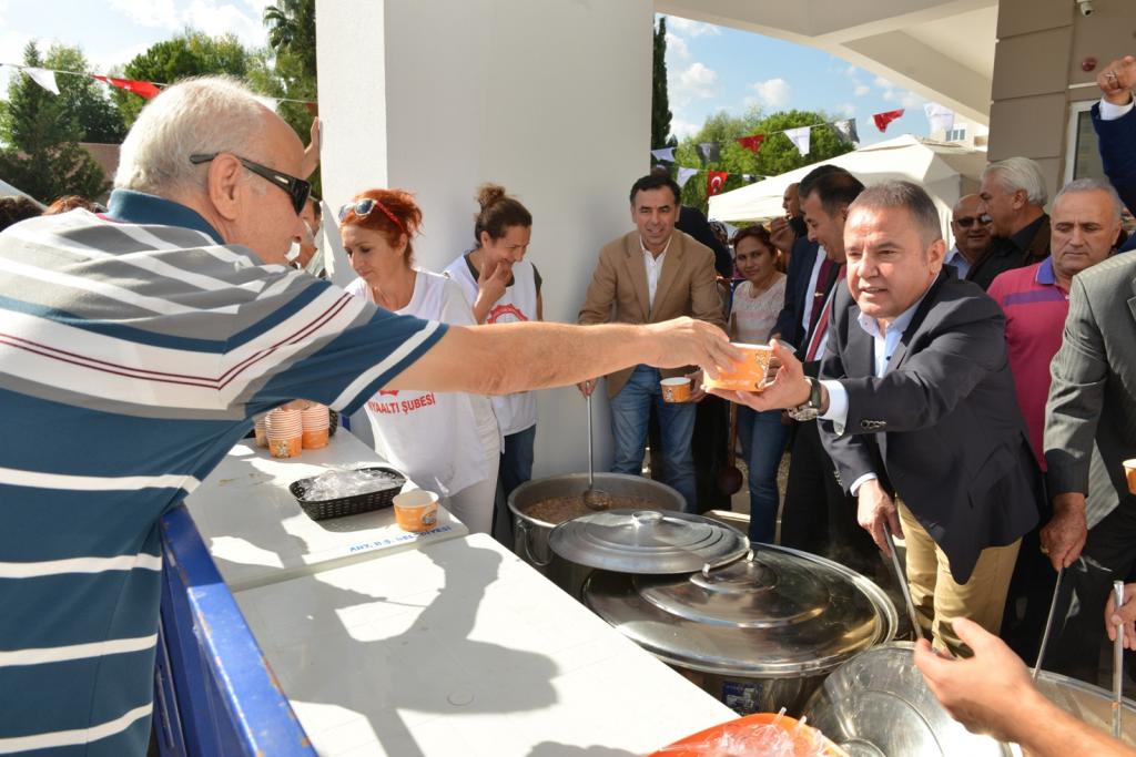 Alevi topluluğunda ‘dede’ olarak adlandırılan Hüseyin Gazi Metin'in yaptığı "Aşure Duası"nın ardından Başkan Muhittin Böcek ve etkinliğe katılan davetliler, aşure kazanlarının arkasına geçerek vatandaşlara kendi elleriyle doldurdukları kaplarda aşure ikram ettiler.