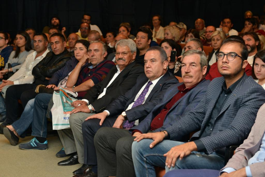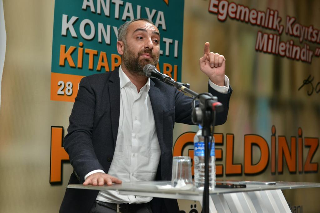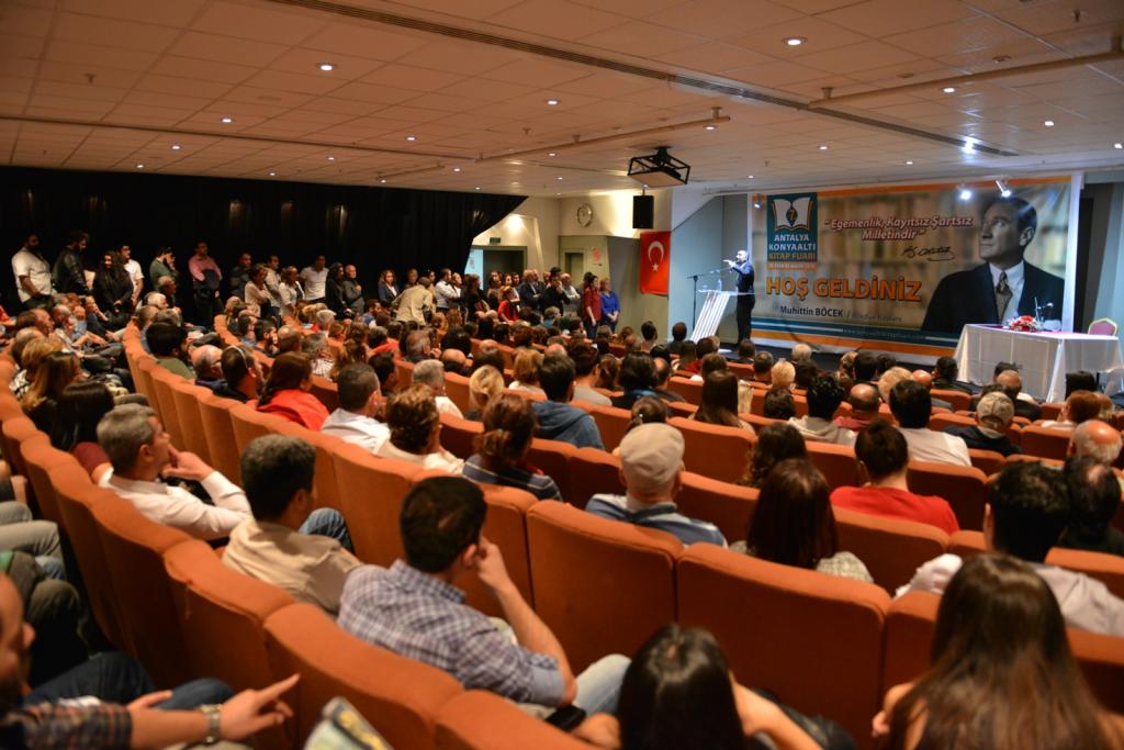 Yıl boyunca bu fuarda sevdiği yazarlarla buluşmayı bekleyen Antalyalıların Fuar’a büyük ilgi gösterdiklerini dile getiren Konyaaltı Belediye Başkanı Muhittin Böcek, son zamanlarda yaşadığımız olaylarla ülkemizin kaos içine sürüklendiğini kaydetti. İsmail Saymaz’ın bu süreç içinde yaşananları okurlarıyla paylaştığını dile getiren Başkan Böcek, bu zorlu günlerin ancak birlik ve beraberlik içinde aşılabileceğini söyledi.