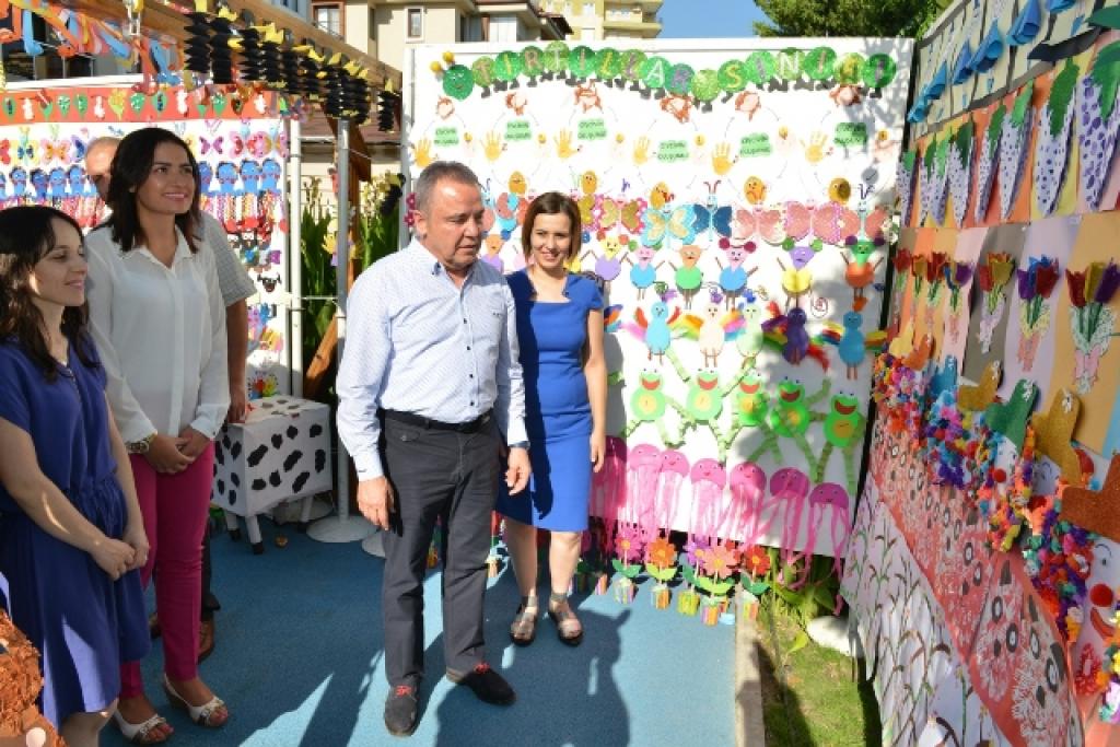 Kreşte oluşturulan serginin açılışına Konyaaltı Belediye Başkanı Muhittin Böcek, kreş öğretmenleri, veliler ve öğrenciler katıldı. Başkan Muhittin Böcek, yılsonu nedeniyle öğrenciler tarafından yapılan resim ve el işi çalışmalarının beğeniye sunulduğu serginin açılış kurdelesini yine çocuklarla birlikte kesti.