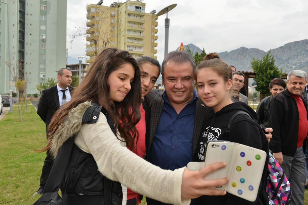 Başkan Böcek, Hurma Mahallesi Boğaçayı Caddesi üzerine inşa edilen ve geçtiğimiz aylarda hizmete açılan parkta yaptığı incelemeler sırasında vatandaşlarında büyük ilgisiyle karşılaştı. Öğrencilerle öz-çekim yapmayı da ihmal etmeyen Başkan Böcek’e, Hurma Mahallesi’nde ikamet eden yerli yabancı vatandaş hizmetlerinden ötürü teşekkür etti.