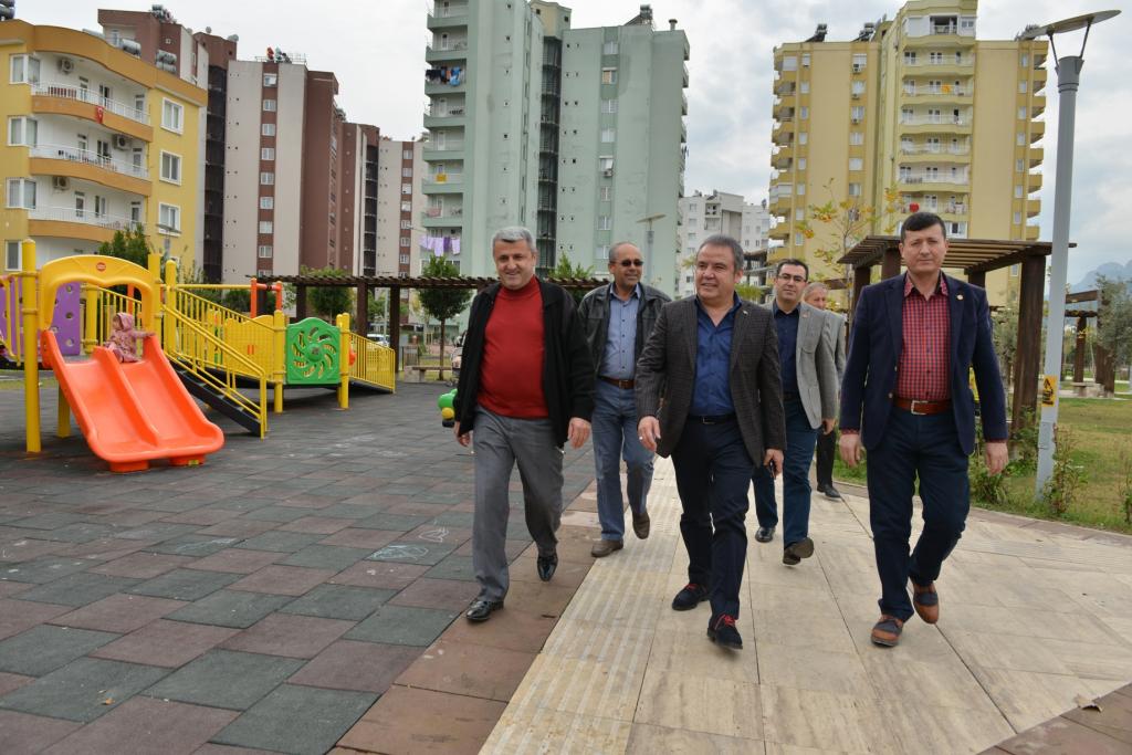 Hurma Mahallesi’nde 13, Sarısu Mahallesi’nde ise 6 park inşa ettiklerini dile getiren Başkan Muhittin Böcek, günün gereksinmelerine uygun projelendirdikleri parklar ile kente modern bir yapı kazandırdıklarını söyledi. Bununla birlikte eskiyen parklarında revize edildiğini ifade eden Başkan Böcek, incelemeleri sırasında vatandaşlarla da sohbet edip onların taleplerini dinledi.
