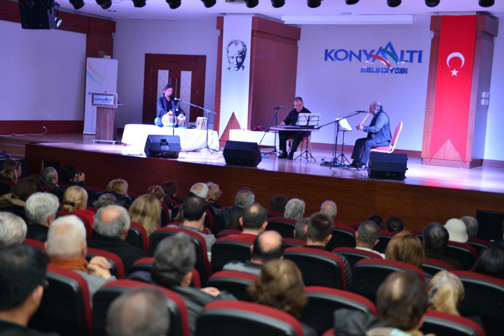 Konyaaltı Belediyesi kültür ve sanat etkinlikleri kapsamında düzenlenen yeni yıl konseri ile Türk müziği nağmeleri Antalya’da yeniden hayat buldu. Kültür ve sanat etkinlikleriyle ilçede bir çok konsere ev sahipliği yapan Konyaaltı Belediyesi, yılın ilk konseri olan Türk Müziği Enstrümantal Nağmeleri ile vatandaşlara unutulmaz bir gece yaşattı.