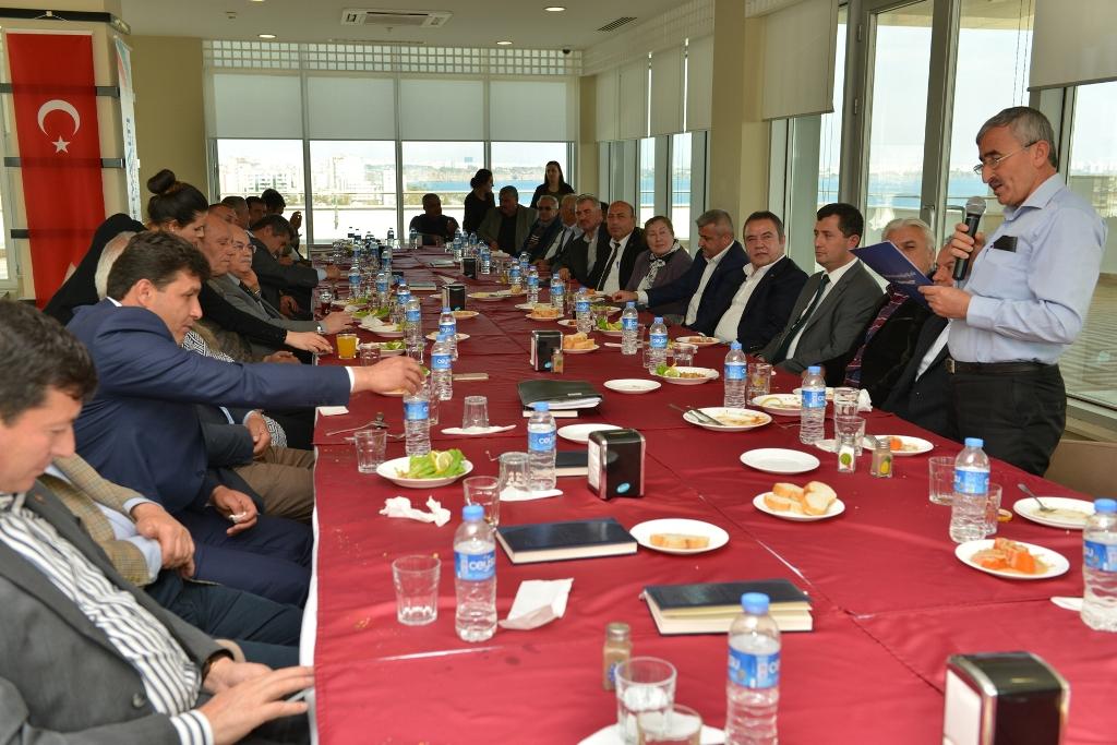 Mahalle muhtarlarının sorunlarını bir bir dinleyen Başkan Muhittin Böcek, ilgili başkan yardımcıları ve birim müdürleriyle birlikte bu sorunlara çözüm aradı. Başkan Böcek’e hizmetlerinden ötürü teşekkür eden muhtarlar, hatıra fotoğrafı çektirmeyi de ihmal etmedi.