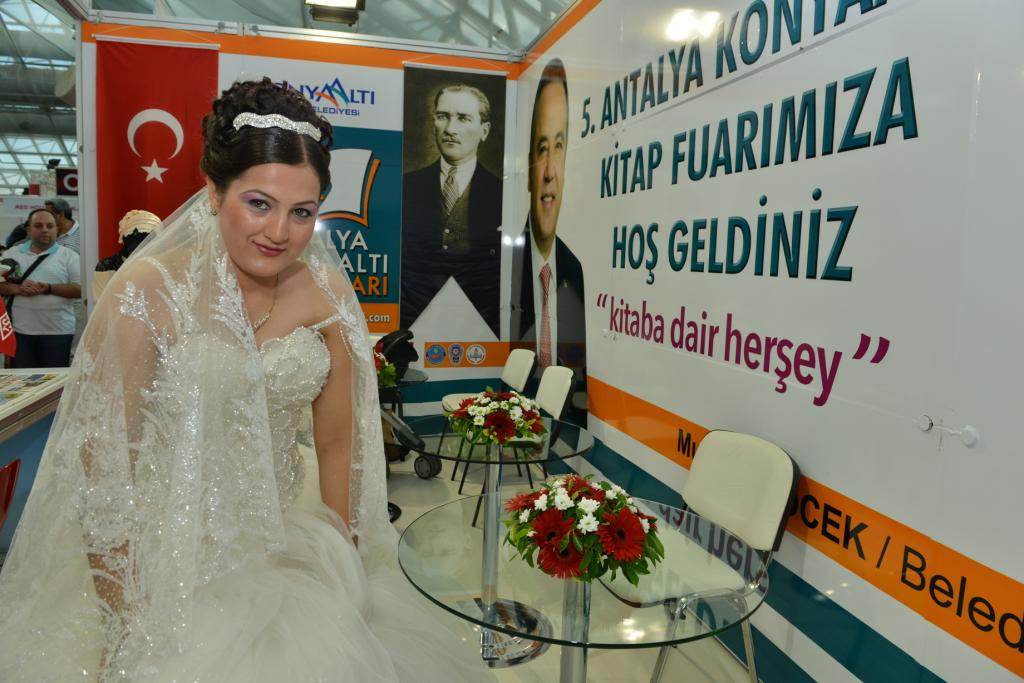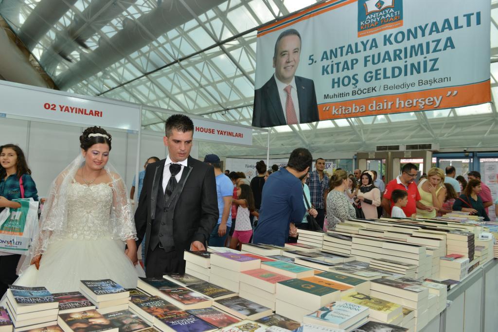 19 Eylül Cuma günü kapılarını Antalyalılara açan Antalya Konyaaltı Kitap Fuarı’nda onlarca yazar ve fikir adamı kitap severlerle buluşuyor. Konyaaltı Belediyesi tarafından bu yıl beşincisi düzenlenen Antalya Konyaaltı Kitap fuarında zaman zaman renkli görüntüler de ortaya çıkıyor. Dünya evine giren Bilgi Çetin ve Hazilet Şahin çifti düğün öncesi Kitap Fuarı’nı ziyaret etti.