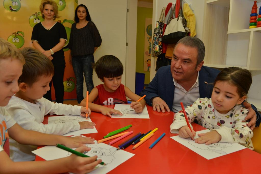 Ayfer Gök ve Alper Duru Anaokullarının ardından geçtiğimiz günlerde düzenledikleri törenle “Çocuk Kreşi Projesi”nin temelini attıklarını ifade eden Muhittin Böcek, bölgede eğitim-öğretim kurumlarının sayısının her geçen yıl arttığına dikkat çekti. Yeni eğitim öğretim yılının ilk haftalarında Jale Teyze Çocukevi Kreşi’ni ziyaret etmek istediklerini dile getiren Başkan Böcek, minik sıralarında boya çalışması yapan 2 ile 6 yaş grubu çocuklarla sohbet etti.