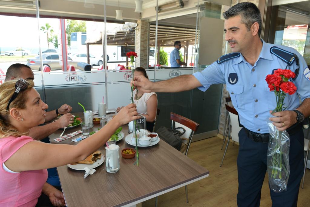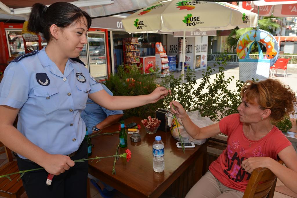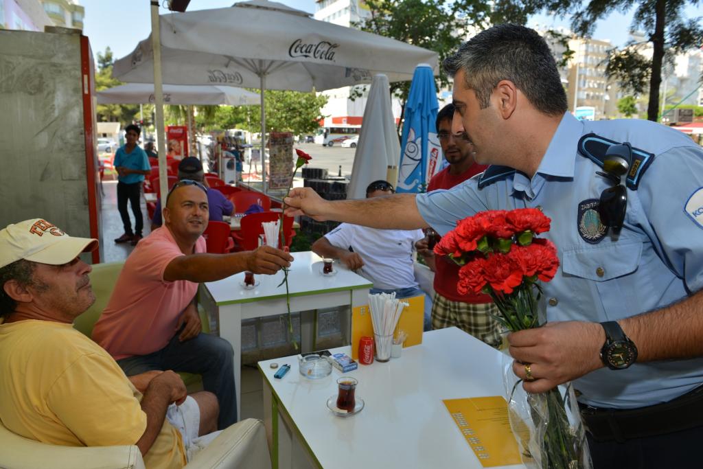 Konyaaltı Belediyesi Zabıta ekipleri “Zabıta Haftası” etkinilikleri kapsamında esnafa ve vatandaşa çiçek dağıttı. Zabıtalar ticaretin yoğun olduğu cadde ve sokaklarda esnafa ve vatandaşa çiçek verdi. Ellerinde çiçeklerle zabıtaları karşılarında gören esnaf ve vatandaşlar şaşkınlık yaşarken, zabıtaların verdiği çiçeklerle mutlu oldular.