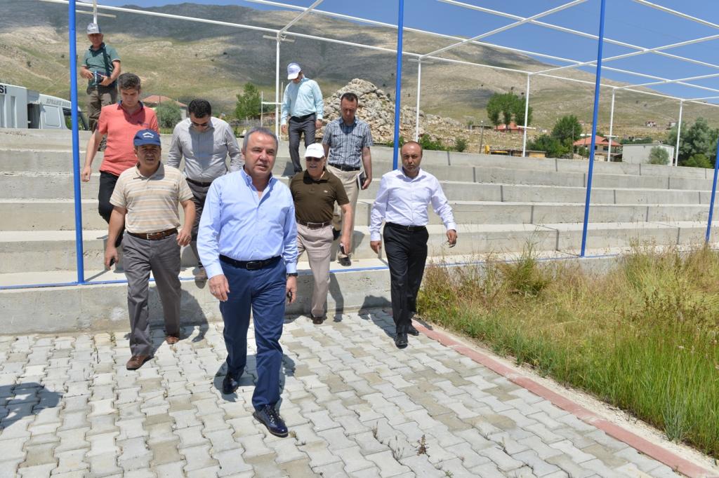 Konyaaltı Belediye Başkanı Muhittin Böcek, deniz seviyesinden 1865 metre yüksekte yer alan Feslikan Yaylası’nda hazırlıkları yerinde inceledi. Teknik ekibiyle birlikte çalışmaları yerinde inceleyen Başkan Muhittin Böcek, konser alanından güreşlerin yapılacağı sahaya kadar adım adım gezerek son rötuşları yaptı.