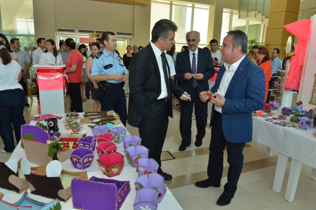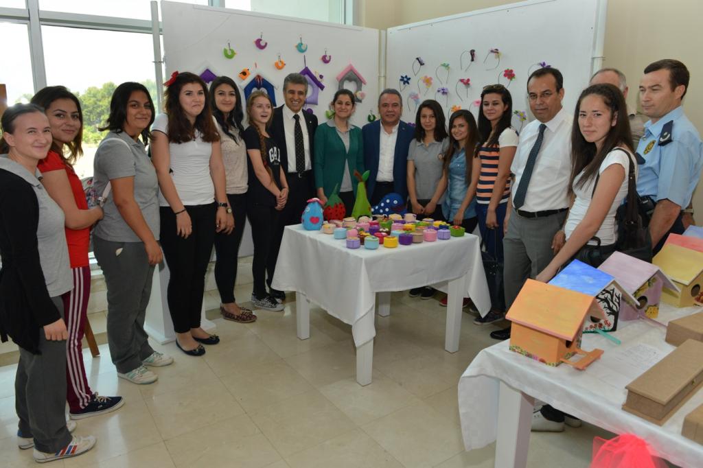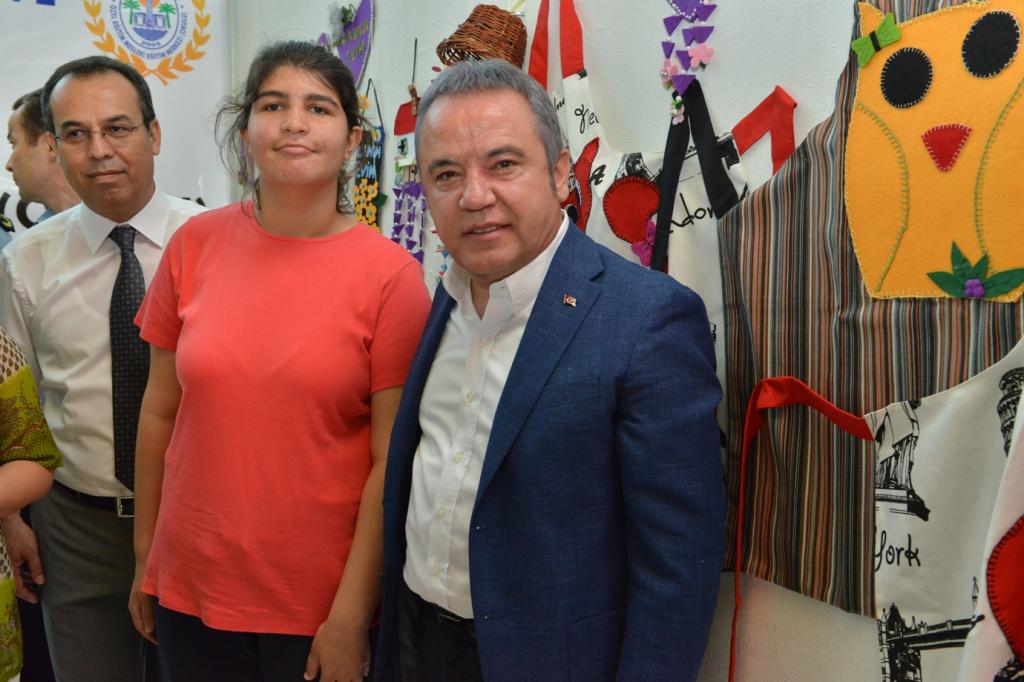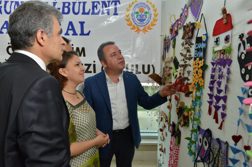 Dr. Günseli-Bülent Akınsal Özel Eğitim Mesleki Eğitim Merkezi’nin öğrencileri yıl boyunca yaptıkları el sanatı çalışmaları, Konyaaltı Belediyesi’nde açtıkları sergi ile görücüye çıkardılar. Konyaaltı Belediyesi fuayesinde yer alan serginin açılışını Konyaaltı Belediye Başkanı Muhittin Böcek, Konyaaltı İlçe Kaymakamı İbrahim Keklik ile birlikte yaptı. Okulun resim, seramik, el sanatları, yemek-pasta, öz bakım, alışveriş-para tanıma branşlarında eğitim gören öğrenciler, yıl boyunca 8 ayrı atölyede yapmış oldukları sergiyi ziyaretçilerin beğenisine sundu.