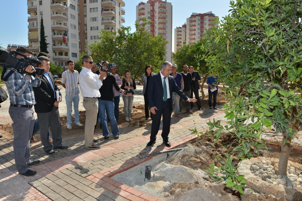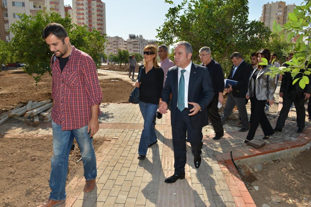 Konyaaltı Belediye Başkanı Böcek’in ikinci durağı Siteler Mahallesi’nde günümüz şartlarında modernize edilen ‘Ayşe Kartal Parkı’ oldu. 4 bin 27 metre kare alana kurulu olan parkın revize çalışmalarını yerinde inceleyen Başkan Böcek, kış ayında yağmur suyu altında kalan parkı revize ederek yükselttiklerini ve bu problemi ortadan kaldırdıklarını söyledi. Bunu yaparken de mevcut hiçbir ağaca zarar vermediklerinin altını çizen Başkan Böcek, turunçgil bahçesi gibi de görünen park içersinde, fitness sokak spor aletleri, üstü çatılı pergolalar, çocuk oyun grupları ve yürüyüş parkurunun da yer alacağını kaydetti.