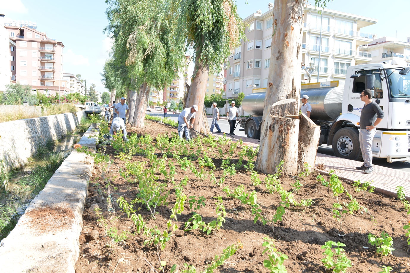 Konyaaltı Belediye Başkanı Muhittin Böcek, yürüttükleri çalışmalar sonucunda ilçenin mahalle mahalle, sokak sakak yeşil dokuya büründüğünü kaydetti. “Hızla betonlaşan Antalya’nın ‘yeşil’ kalmayı başarabilen ilçesi Konyaaltı’nda kişi başına düşen yeşil alan miktarı 11.62 metrekare” diyen Başkan Böcek, Gürsu Mahallesi’nde başlatılan “yeşil band” çalışmalarıyla, ilçenin çehresini güzelleştirmeye devam ettiklerini kaydetti.
