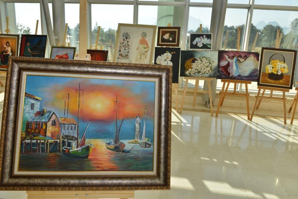 Konyaaltı Belediyesi hizmet binası fuayye alanında açılan sergide 41 resim görücüye çıktı. Konyaaltı Belediye Başkanı Muhittin Böcek, KONSEM’de çeşitli meslek ve sanat dalında eğitim gören vatandaşların, burada aldıkları eğitimi büyük ölçüde hayatlarına yansıttığını söyledi. Amaçlarının özellikle ev hanımlarını sosyal bir ortamda buluşturmak olduğunu dile getiren Başkan Muhittin Böcek, KONSEM’de resim kursuna katılan öğrencilerin hazırladığı sergiyi de bu anlamda önemli bulduğunu söyledi.