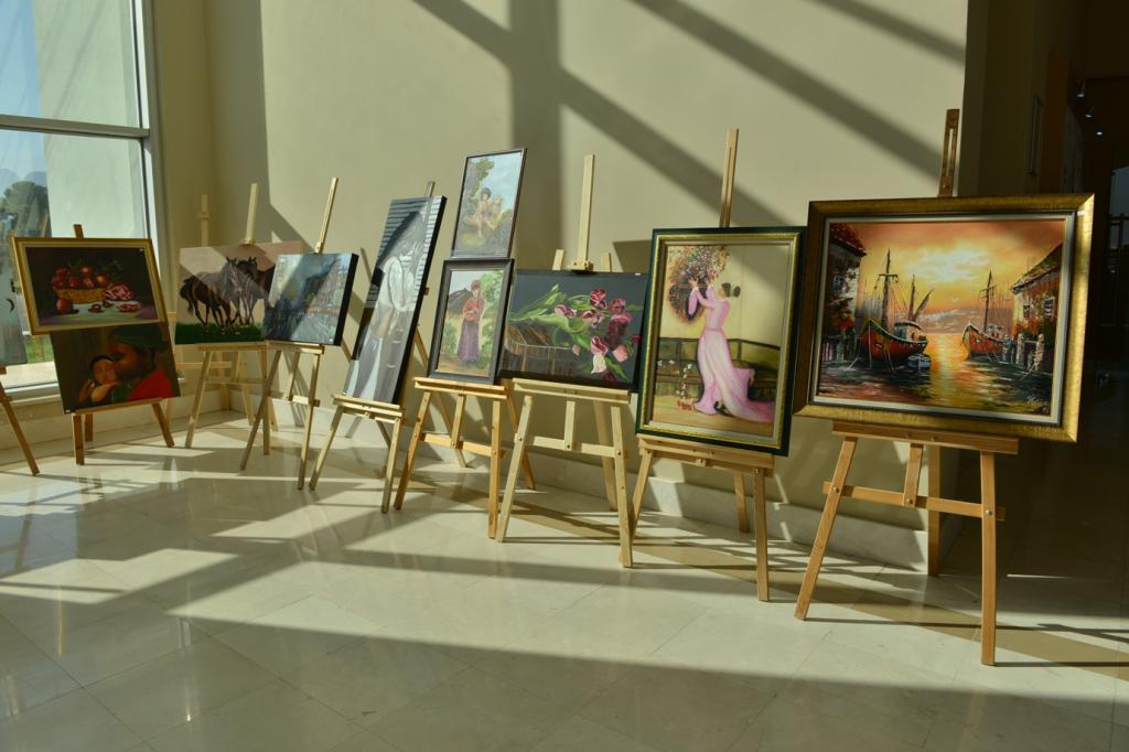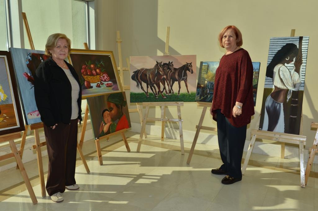 14 kişilik gruptan oluşan resim kursunda eğitim gören Nigar Kaynak ve Semiha Alkır, yapmış oldukları yağlı boya resimleri sergiye çıkardı.