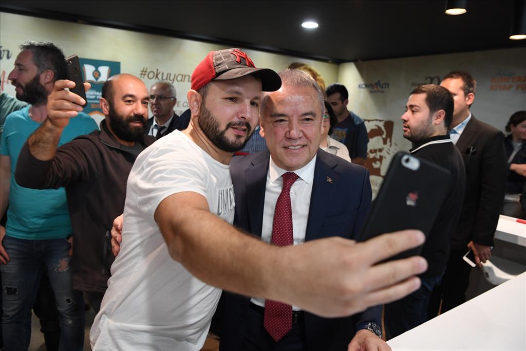 10 gün süren fuarda her gün vatandaşlarla bir araya gelen, yazarları stantlarında ziyaret eden Başkan Muhittin Böcek, fırsat buldukça “Ben Bu Şehre Aşığım” isimli kitabının yayımlandığı stantta hemşehrileri içn kitabını imzaladı. Vatandaşların kitabına büyük ilgi gösterdiğini dile getiren Muhittin Böcek, kitabı hakkından okurlardan son derece olumlu dönüşler aldığını söyledi. Sevdiği yazar ve sanatçıyla tanışma fırsatı bulan ziyaretçilerin fuardan güler bir yüzle ayrıldıklarını söyleyen Başkan Böcek, bu mutluluğun kendileri için son derece önemli olduğunu belirterek, tüm yayınevi temsilcilerine ve yazarlara teşekkür etti. Başkan Böcek, konuşmasının ardından yayınevi temsilcilerine ve yazarlara tatlı ikram etti.