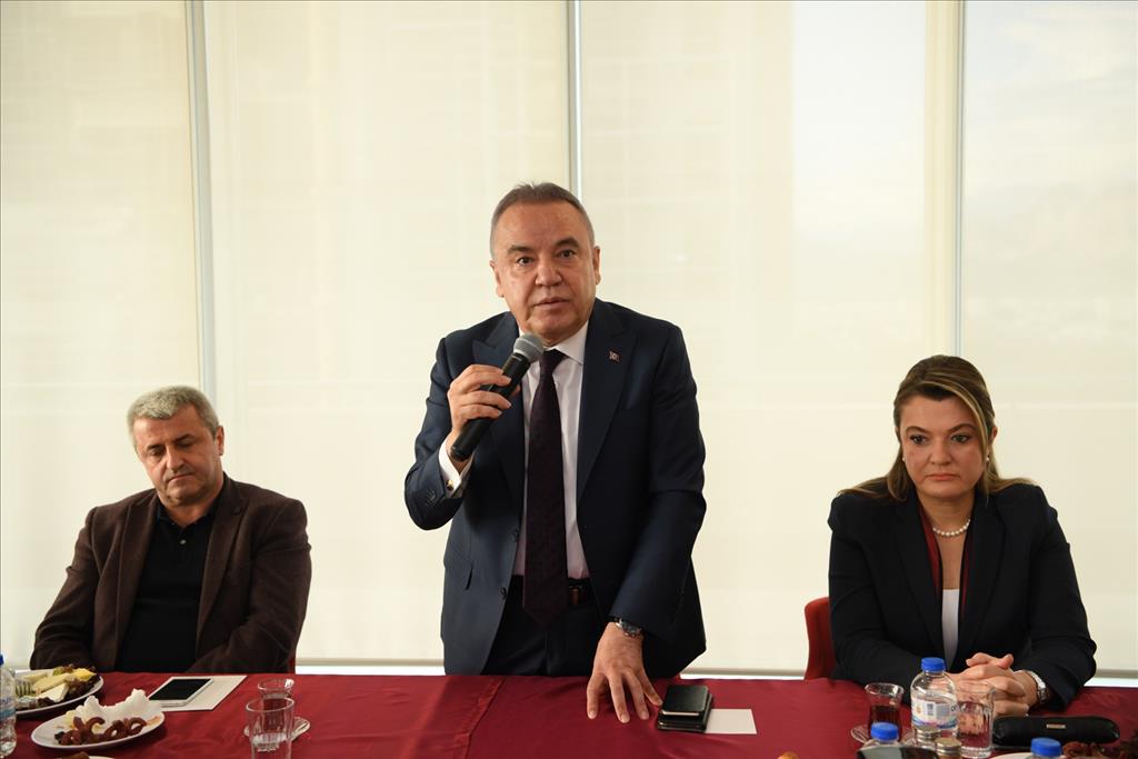 Konyaaltı’nda mahalle muhtarlarıyla her fırsatta bir araya gelen Konyaaltı Belediye Başkanı Muhittin Böcek, geleneksel mahalle muhtarları toplantısı ile bölge muhtarlarını ağırladı. Başkan Böcek, Konyaaltı Mahalle Muhtarları Derneği Başkanı Faruk Kıldıran ile İlçe mahalle muhtarlarının katıldığı toplantıda, Belediye hizmetleri hakkında bilgi verdi.