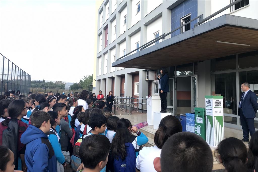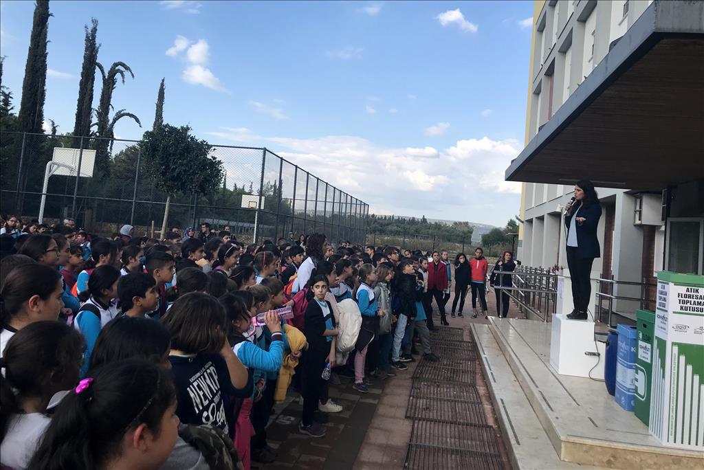 Başkan Muhittin Böcek, “Atık Yönetimi ve Sıfır Atık Projesi” ile ilgili eğitim çalışmalarına ilk olarak Ayten Çağıran İlkokulu’ndan başladıklarını ifade eden Muhittin Böcek, öğrencilere floresan lamba, elektronik gibi tehlikeli atıkları nasıl yerinde ayrıştırabileceklerini öğrettiklerini söyledi.