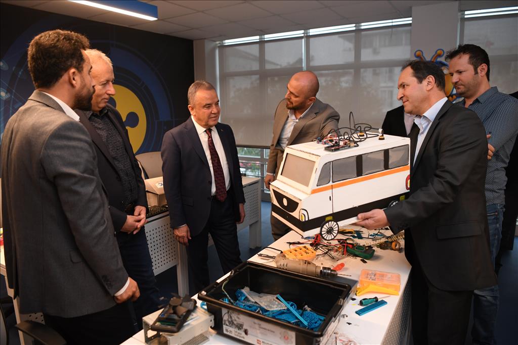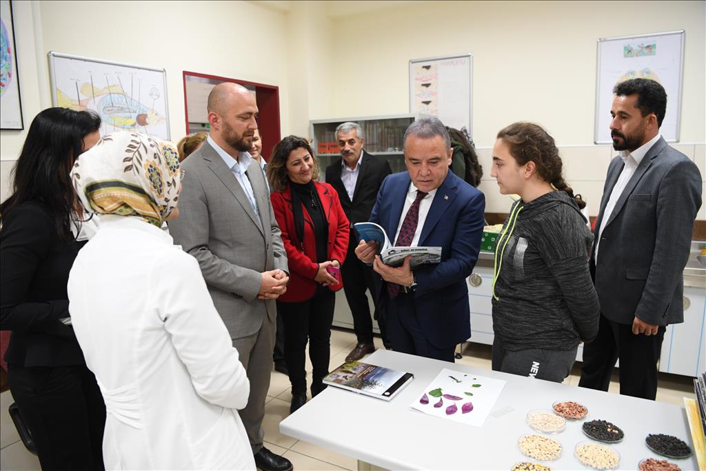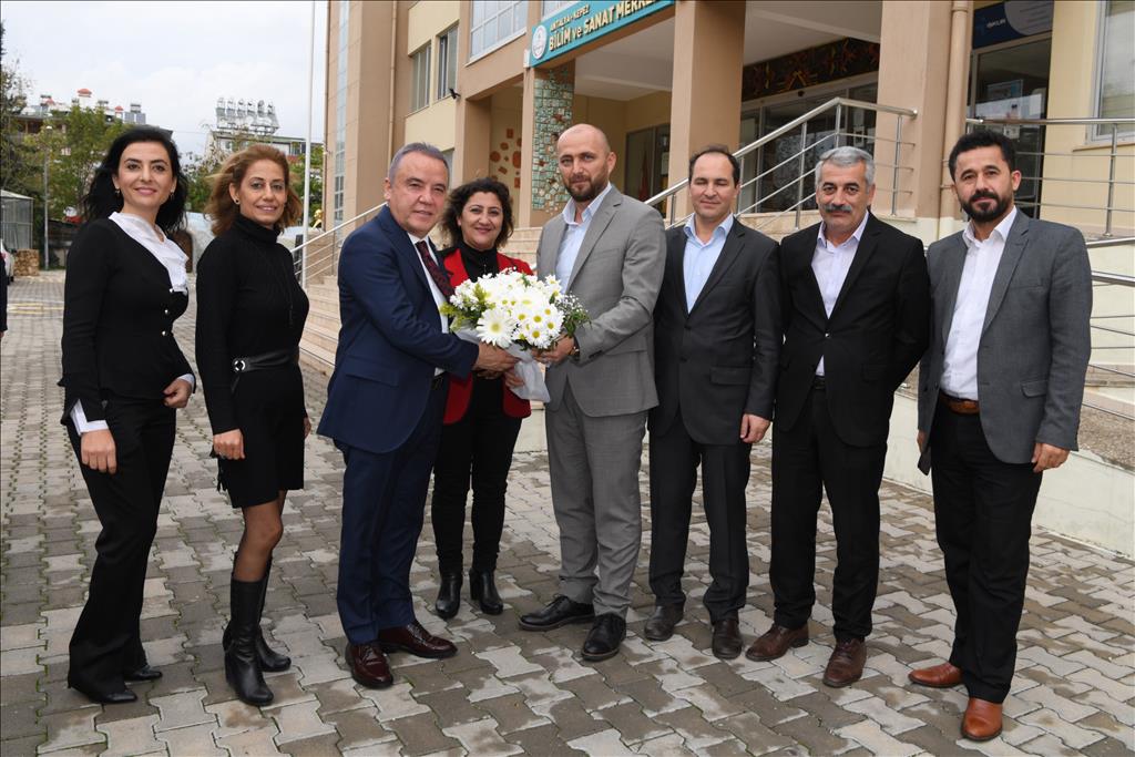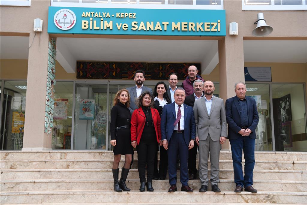İlçe sınırları içinde yer alan okulları ziyaret ederek, okul yönetimin taleplerine olumlu dönmüş yapan Konyaaltı Belediye Başkanı Muhittin Böcek, çevre ilçelerde köy okullarını da ziyaret ederek, destek oluyor. Başkan Muhittin Böcek, Antalya’da ilkokul, ortaokul ve lise olmak üzere 884 üstün zekalı öğrenciye okul sonrası yeteneklerini geliştirmeye yönelik eğitim veren Bilim ve Sanat Merkezini ziyaret etti. Bilim ve Sanat Merkezi Müdürü Arif Aydeniz ve öğretmenler tarafından çiçekle karşılanan Başkan Böcek, sınıfları gezerek yetenekli öğrencilerin farklı alanlarda ki çalışmalarını izledi.