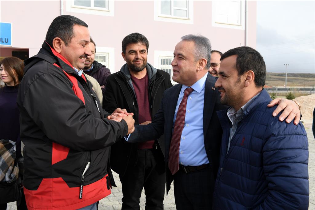 Korkuteli’nde Kızılcadağ İlk ve Ortaokulu Müdürü Hasan Ali Dinç’te kendilerine destek sözü veren Başkan Böcek’e teşekkür etti.