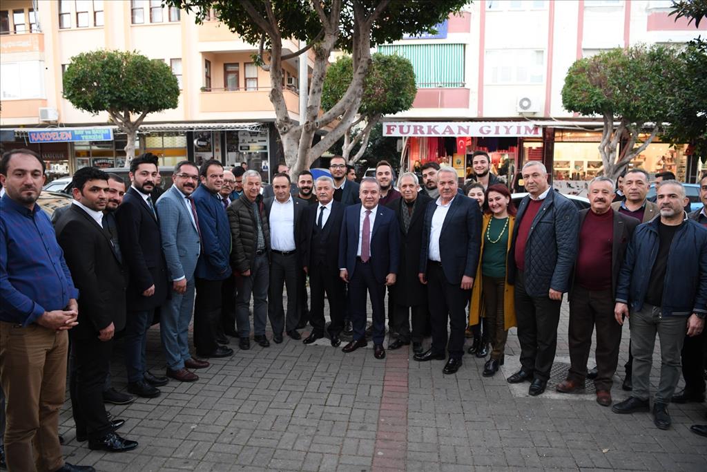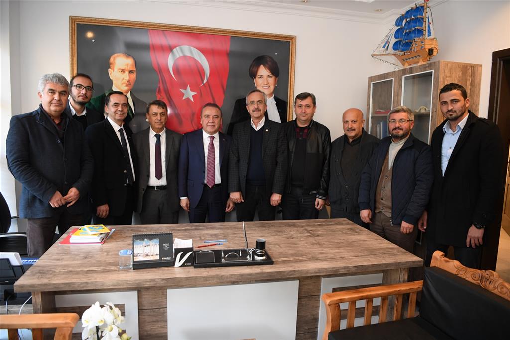 Başkan Muhittin Böcek, İYİ Parti Alanya İlçe Başkanı Yücel Apaydın ve İYİ Parti Alanya Belediye Başkan Adayı Abdullah Sönmez’i de ziyaret etti.