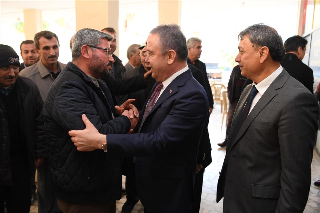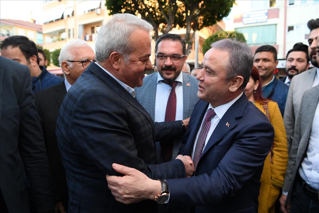 Başkan Muhittin Böcek, Gazipaşa ziyaretleri ardından Alanya’da bir dizi ziyaretlerde bulundu. Alanya’da ilk olarak CHP İlçe Başkanı Sefa Çorbacı’yı ziyaret eden Muhittin Böcek, burada partililere seslendi. Başkan Böcek "Hepinizi şahsım ve Antalya'mız adına sevgi ve saygıyla selamlıyorum. Doğup büyüdüğüm, bağını bahçesini bildiğim, sokaklarında yürüdüğüm güzel Antalya'mızda Büyükşehir Belediye Başkanlığına adayım. 'Tarlada izi olmayanın harmanda yüzü olmaz' denir bizde. Başta gençlerimiz ve kadınlarımız olmak üzere partililerimiz ile birlikte çalışacağız. Önümüzde yaklaşık 90 günlük bir süreç var. 'Biz birlikte yaparız' diyerek yola çıktığımız, ötekileştirmeden, düne bakmadan, hangi partiye oy verdiğine bakmadan, hep birlikte çalışacağız. Antalya'mızı da yine hep birlikte kazanacağız. " diye konuştu.