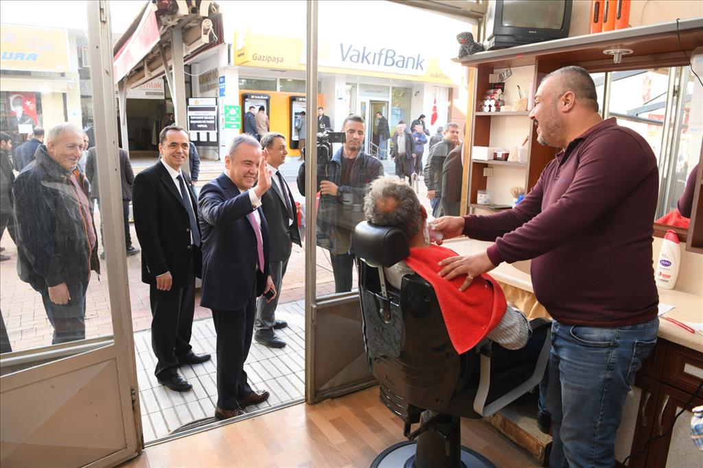 CHP’nin Antalya Büyükşehir Belediye Başkan Adayı, Konyaaltı Belediye Başkanı Muhittin Böcek, Gazipaşa ve Alanya İlçelerinde bir dizi ziyaret gerçekleştirdi. Başkan Böcek, CHP Gazipaşa İlçe Başkanı Ömer Güven, CHP Gazipaşa Belediye Başkan Adayı Mehmet Ali Yılmaz ve CHP İl Gençlik Kolları Başkanı Musa Gül ile birlikte Gazipaşa İlçe Kaymakamı Ali Sakar, Gazipaşa İYİ Parti İlçe Başkanı Osman Nuri Yılmaz, Gazipaşa Gazeteciler Cemiyeti Başkanı Adem Tekin ve Gazipaşa Gazeteciler ve Yazarlar Cemiyeti Başkanı Yakup Kocabaşı ile Atatürk Düşünce Derneği Gazipaşa Şube Başkanı Fehmi Tuncer'i ziyaret etti. Başkan Böcek, ziyaretlerinin yanı sıra ilçedeki esnaf ile de sohbet ederek, destek istedi.
