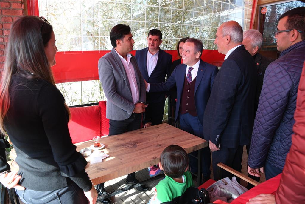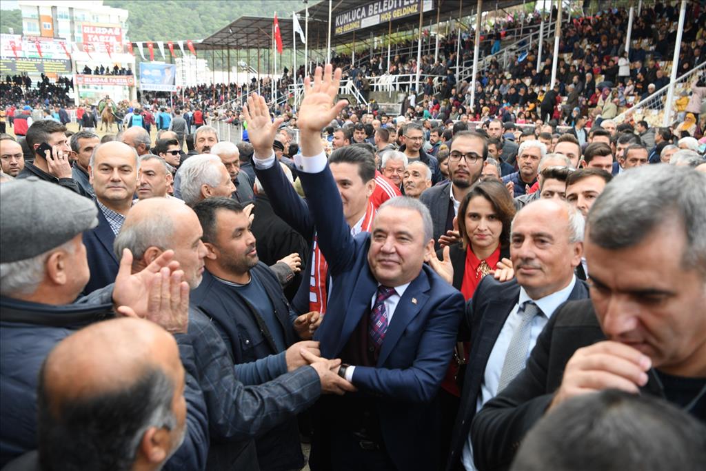 CHP Antalya Büyükşehir Belediye Başkan Adayı olan Konyaaltı Belediye Başkanı Muhittin Böcek, Kumluca’da bu yıl 13.sü düzenlenen Deve Güreşlerini izledi. Başkan Böcek, Antalya İl Başkanı Ahmet Kumbul, CHP Antalya Milletvekilleri Cavit Arı, Çetin Osman Budak ve Aydın Özer, CHP Gençlik Kolları İl Başkanı Musa Gül ile birlikte ilk olarak CHP Kumluca İlçe Başkanı Fahrettin Karaöz’ü ziyaret etti. Partililer tarafından büyük coşkuyla karşılanan Başkan Muhittin Böcek, Antalya’da barış ve huzur içinde seçim çalışması yürüttüklerini belirterek, her kesimden vatandaşın oyuna talip olduğunu söyledi. Antalya’da Gazipaşa’dan Kaş’a, genç-yaşlı, kadın-erkek topyekün çalıştıklarını dile getiren Muhittin Böcek, birlik ve beraberlik içinde bu seçimleri kazanacaklarını bildirdi.