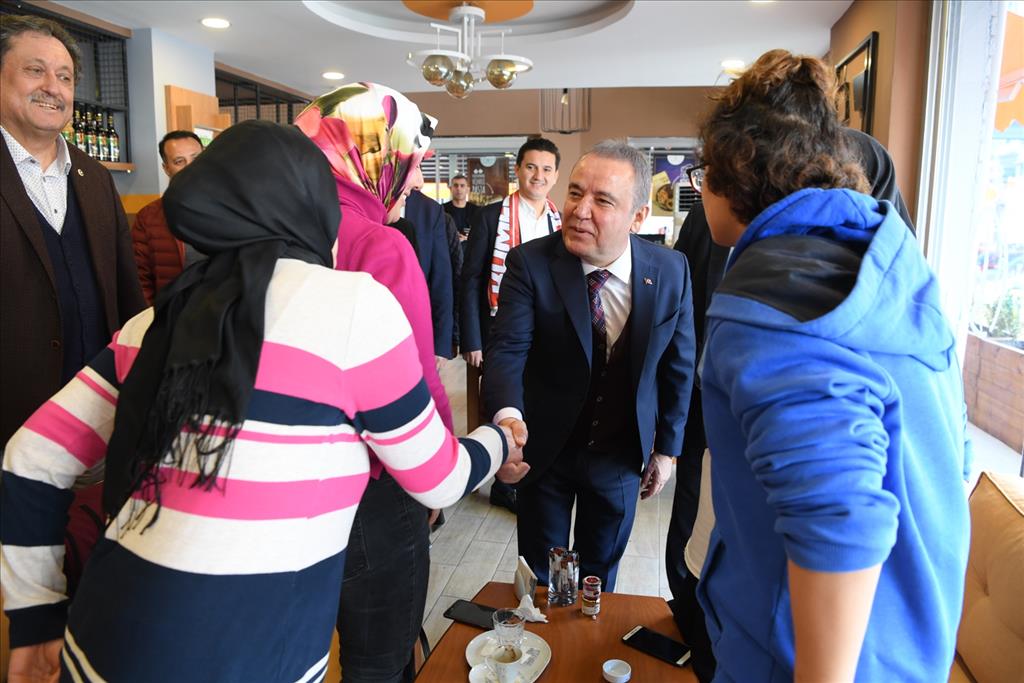 Başkan Böcek, Kumluca İlçe Başkanlığı’nda yaptığı konuşması sonrasında beraberindeki heyetle birlikte Kumluca sokaklarında esnaf ziyareti yaptı. Ahmet Ali Ağa Bulvarı üzerinde esnafları tek tek ziyaret ederek, yeni yıllarını tebrik etti. Esnaf tarafından büyük sevgiyle karşılanan Muhittin Böcek, bu ziyaretleri sonrasında, Kumluca Belediyesi tarafından bu yıl 13.sü düzenlenen Deve Güreşlerinin yapıldığı Karatepe Stadına geçti. Burada Kumluca Belediye Başkanı Yusuf Göven tarafından karşılanan Başkan Böcek’e, vatandaşlar da büyük sevgi gösterdi.