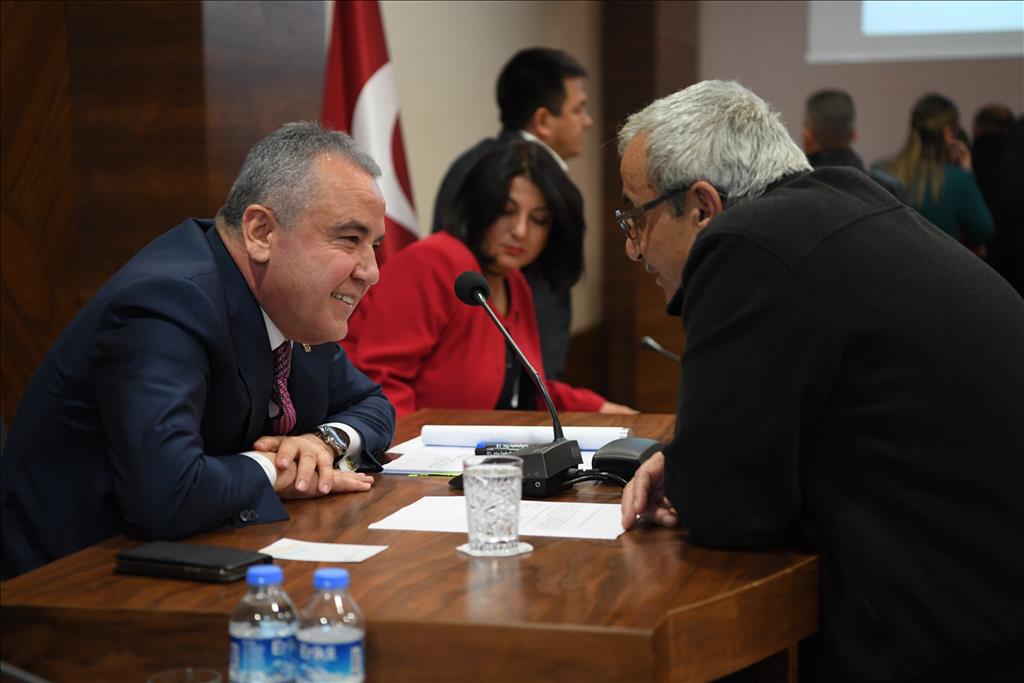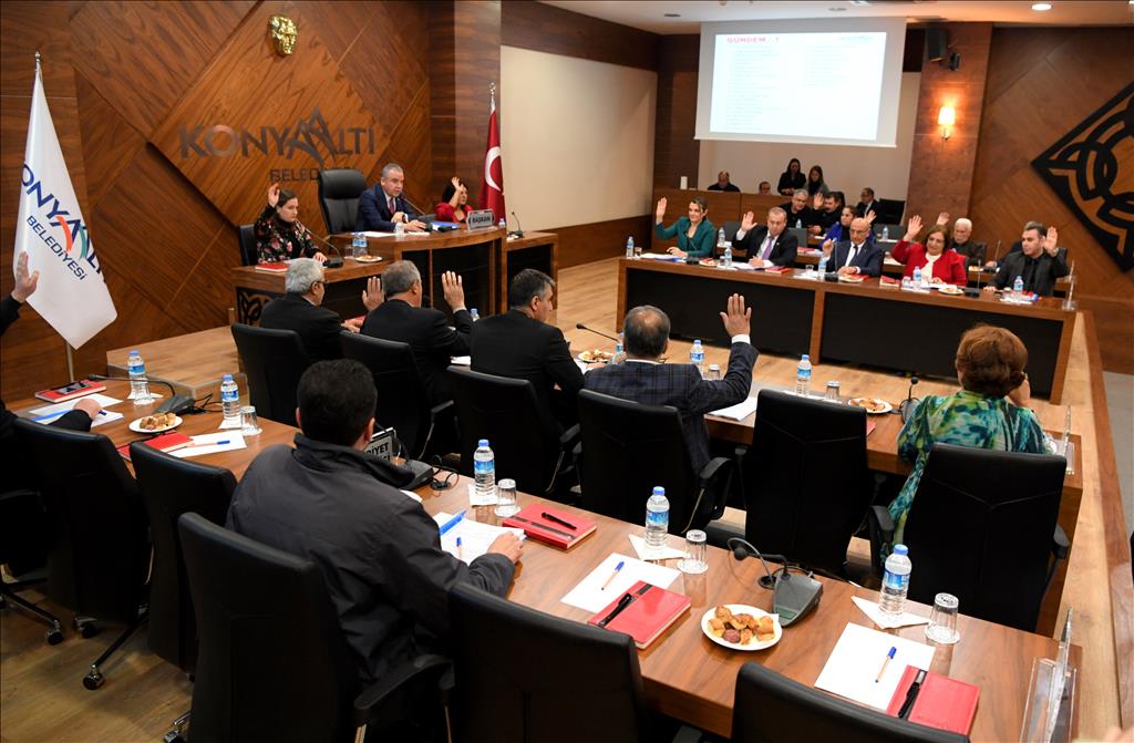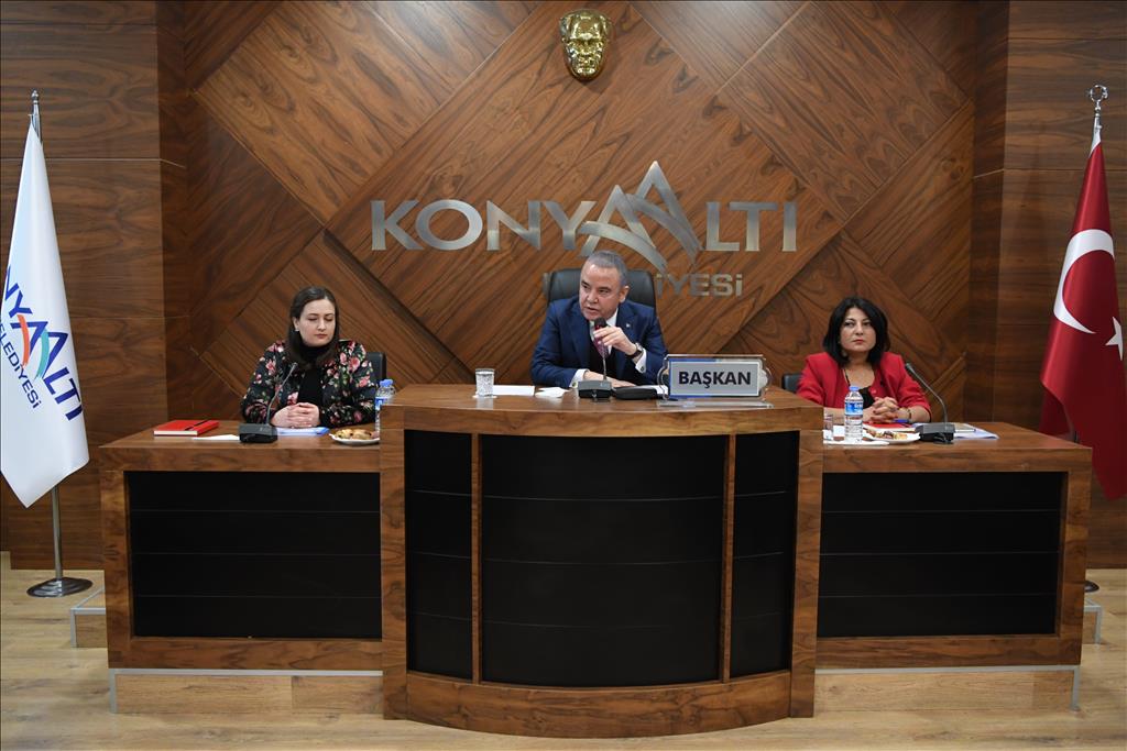 Konyaaltı Belediyesi Meclis Üyeleri, 2019 yılının ilk meclis toplantısı için, Konyaaltı Belediye Başkanı Muhittin Böcek’in başkanlığında bir araya geldi.