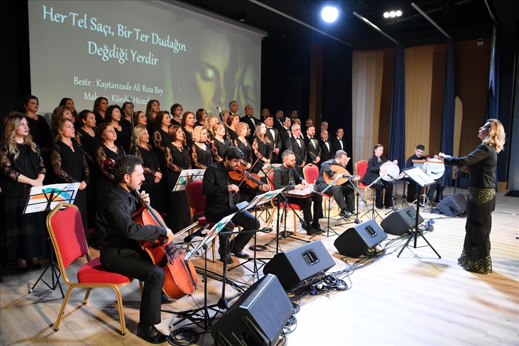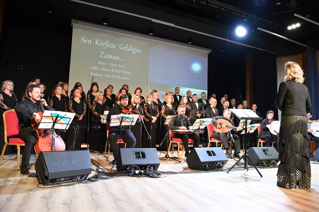 Zehra Özçelik’in şefliğinde sahne alan Türk Sanat Müziği Korosu’nun saz ekibinde; ud da Onur Uğurbaş, kanun da Ahmet Baran, Mustafa Kaçan, viyolonsel de Alaaddin Gencer, ritim de Nurullah Gürsoy ve Sonay Koca Mutlu yer aldı. “Her tel sazı, bir ter dudağın değdiği yerdir, Sen körfeze geldiğin zaman, Hüzün, Köroğlu” gibi birbirinden değerli 18 eserin seslendirildiği konserde izleyenlerde alkışlarla koroya eşlik etti.