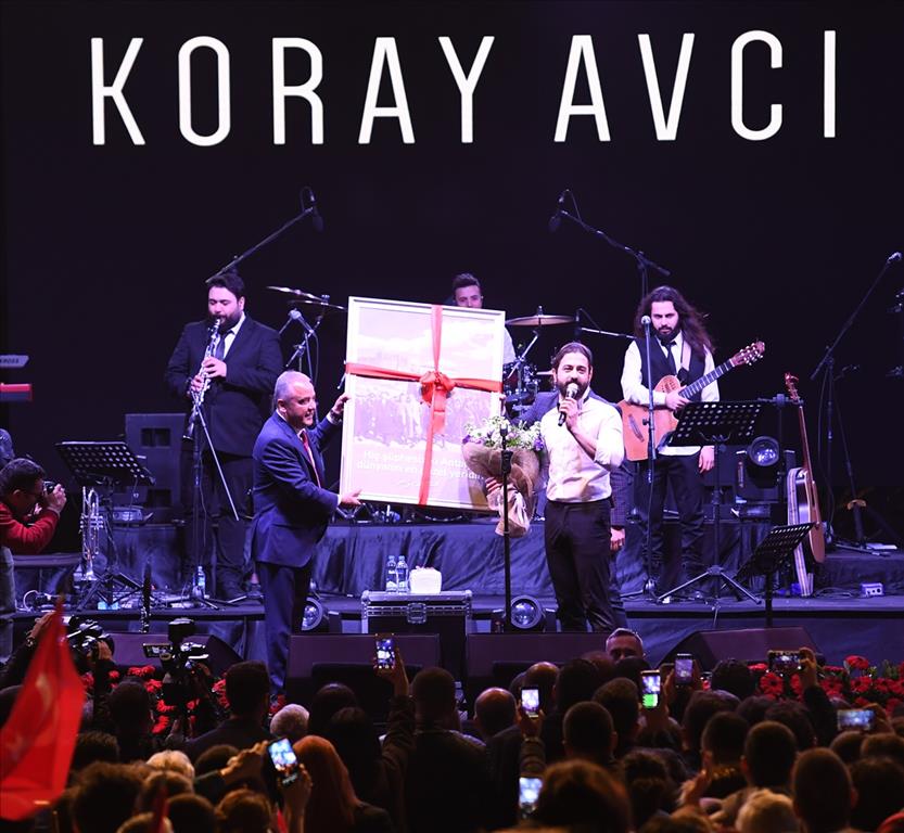 Başkan Muhittin Böcek’in konuşması alanı dolduranlardan yoğun alkış topladı. Konser saatinin gelmesiyle Cumhuriyet Meydanı’nda coşku arttı. Büyük bir coşku içinde sahne alan ünlü sanatçı Koray Avcı, Cumhuriyet Meydanı’nı dolduran Antalyalılara muhteşem bir konser gerçekleştirdi. Alanı dolduran vatandaşlar Koray Avcı’nın şarkılarını eşlik ederek, unutulmaz bir gece yaşadı. Başkan Böcek, günün anısına Koray Avcı’ya Atatürk’ün çok özel bir fotoğraf çerçevesini hediye etti. Antalya’nın kendi için çok özel bir yeri olduğunu söyleyen Koray Avcı, “Çok güzel bir hediye, evimin en özel yerine asacağım” dedi. Başkan Muhittin Böcek, konser anısına Koray Avcı ile öz çekim yaparak, bu anı ölümsüzleştirdi. Yaklaşık iki saat sahne de kalan Koray Avcı, şarkılarıyla muhteşem bir konsere imza attı.